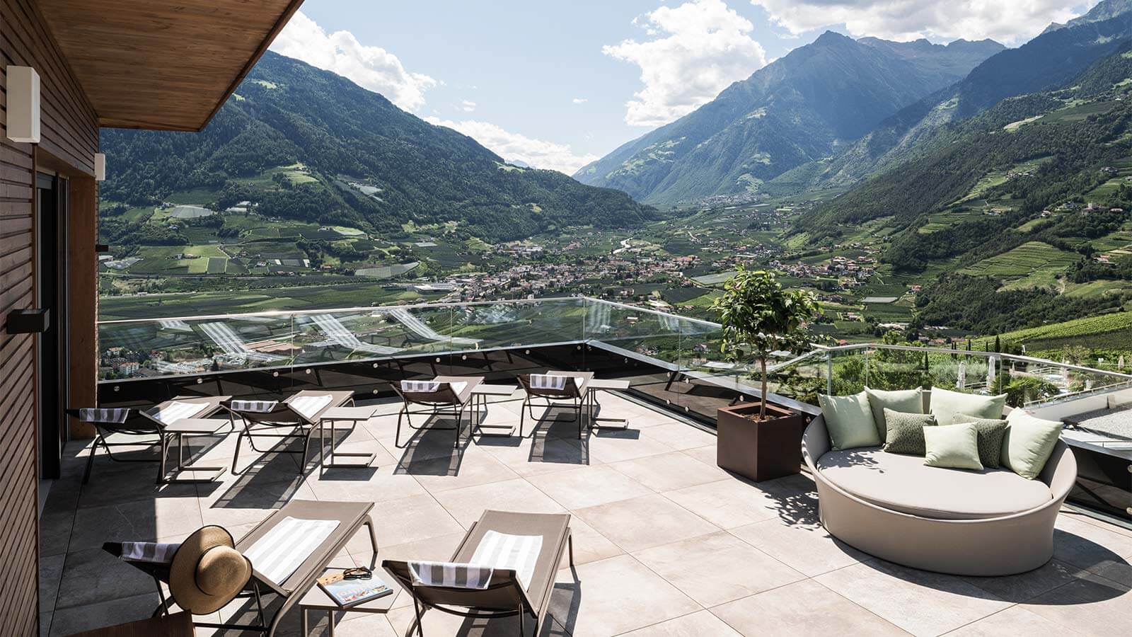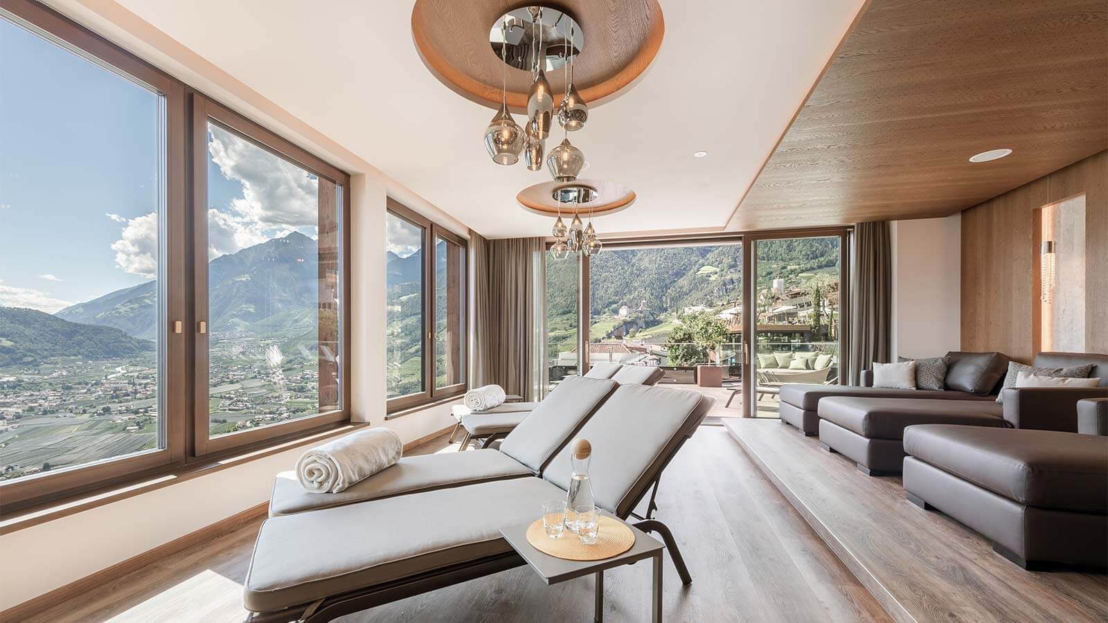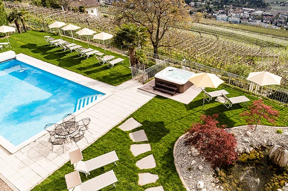 And to cap it all: by opening the sliding door you will gain access to our roof terrace, with chairs and lunges, a relaxation area and a Jacuzzi, all with a view so beautiful that it cannot be put into words. Discover our wellness area in our wellness hotel in Tirolo, your belvedere above Merano.