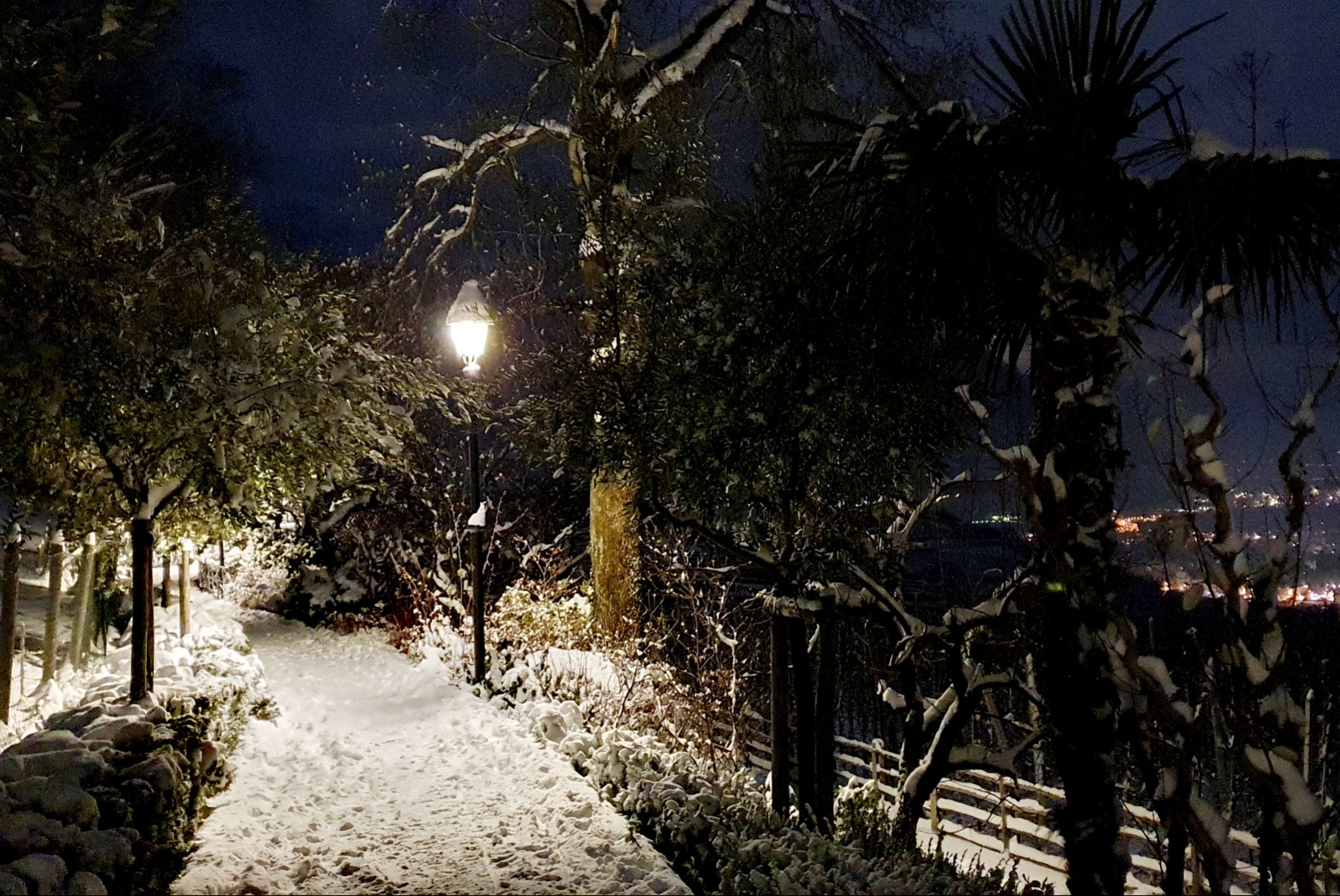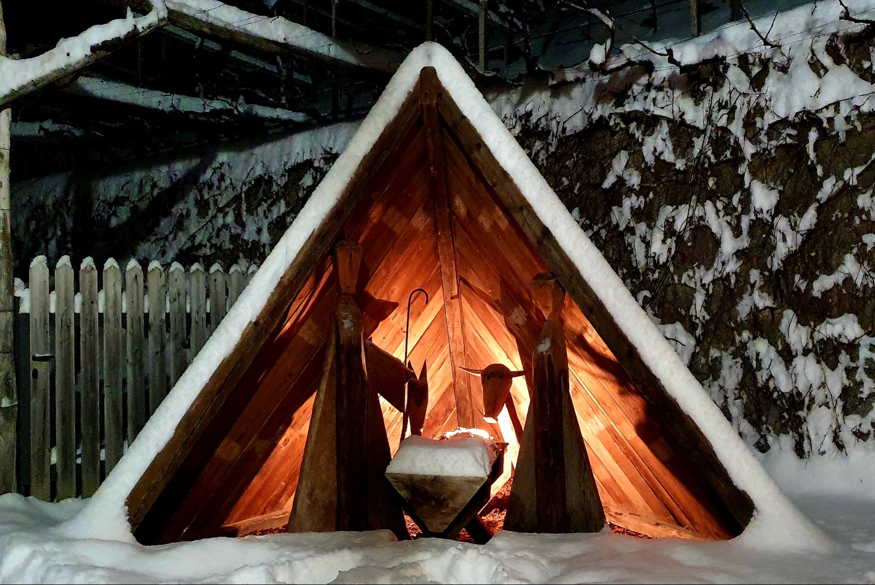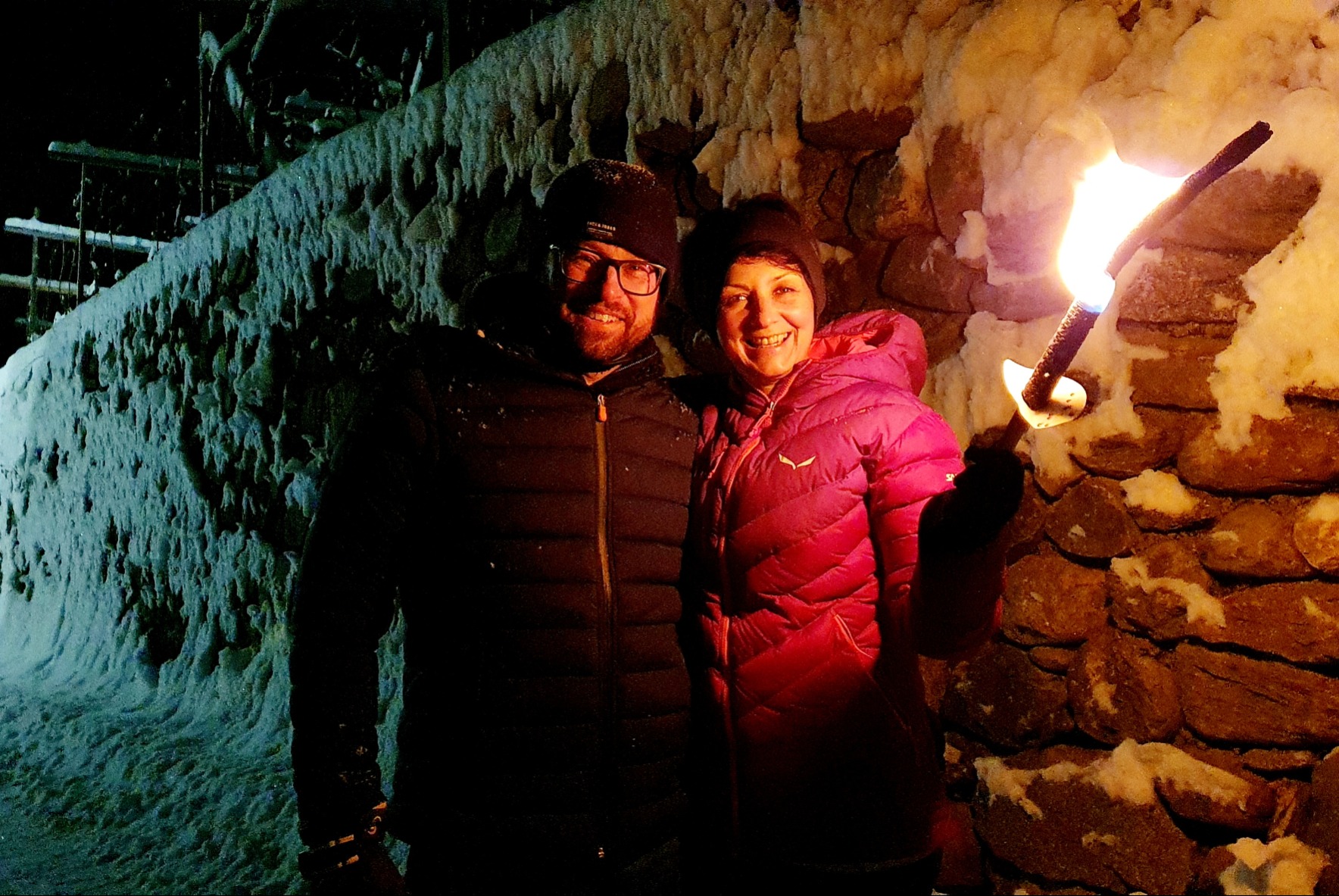 Der Schnee knirscht unter den Sohlen der Winterstiefel und der Schein der Fackeln wirft ein mystisches Licht auf Bäume und Sträucher.