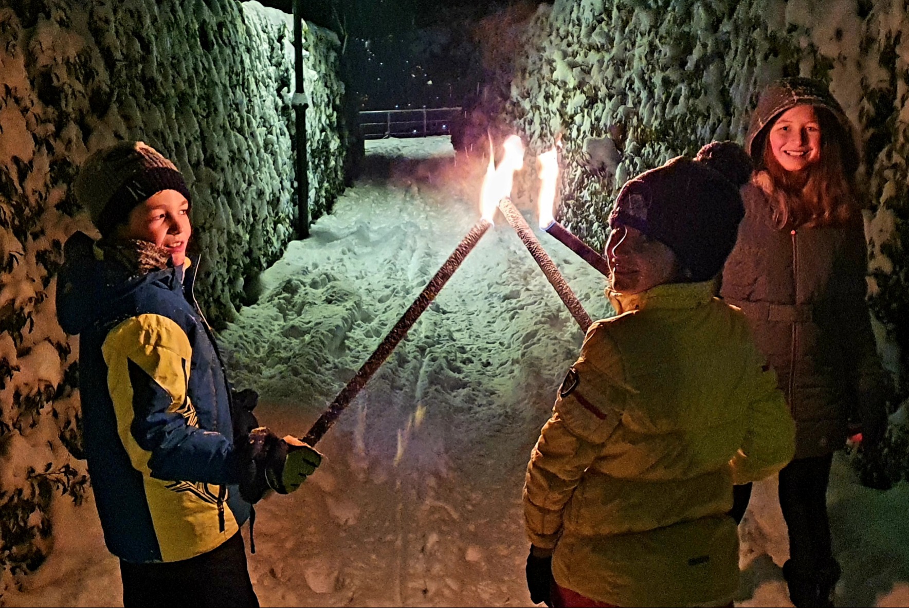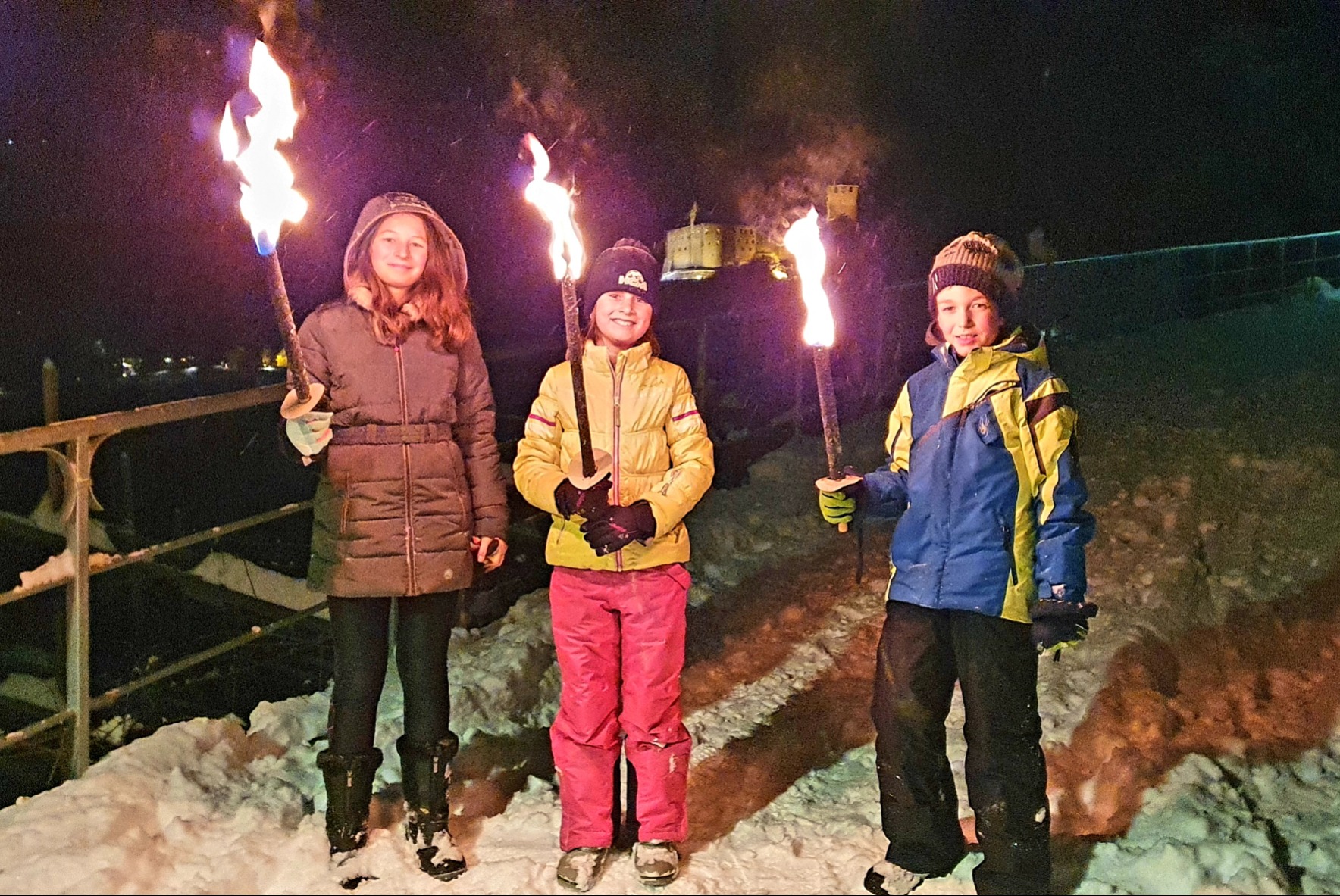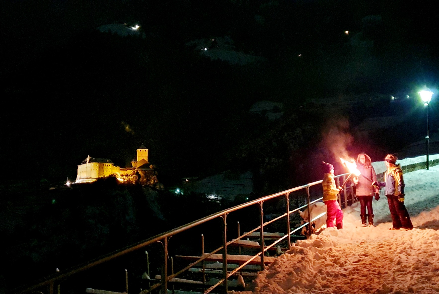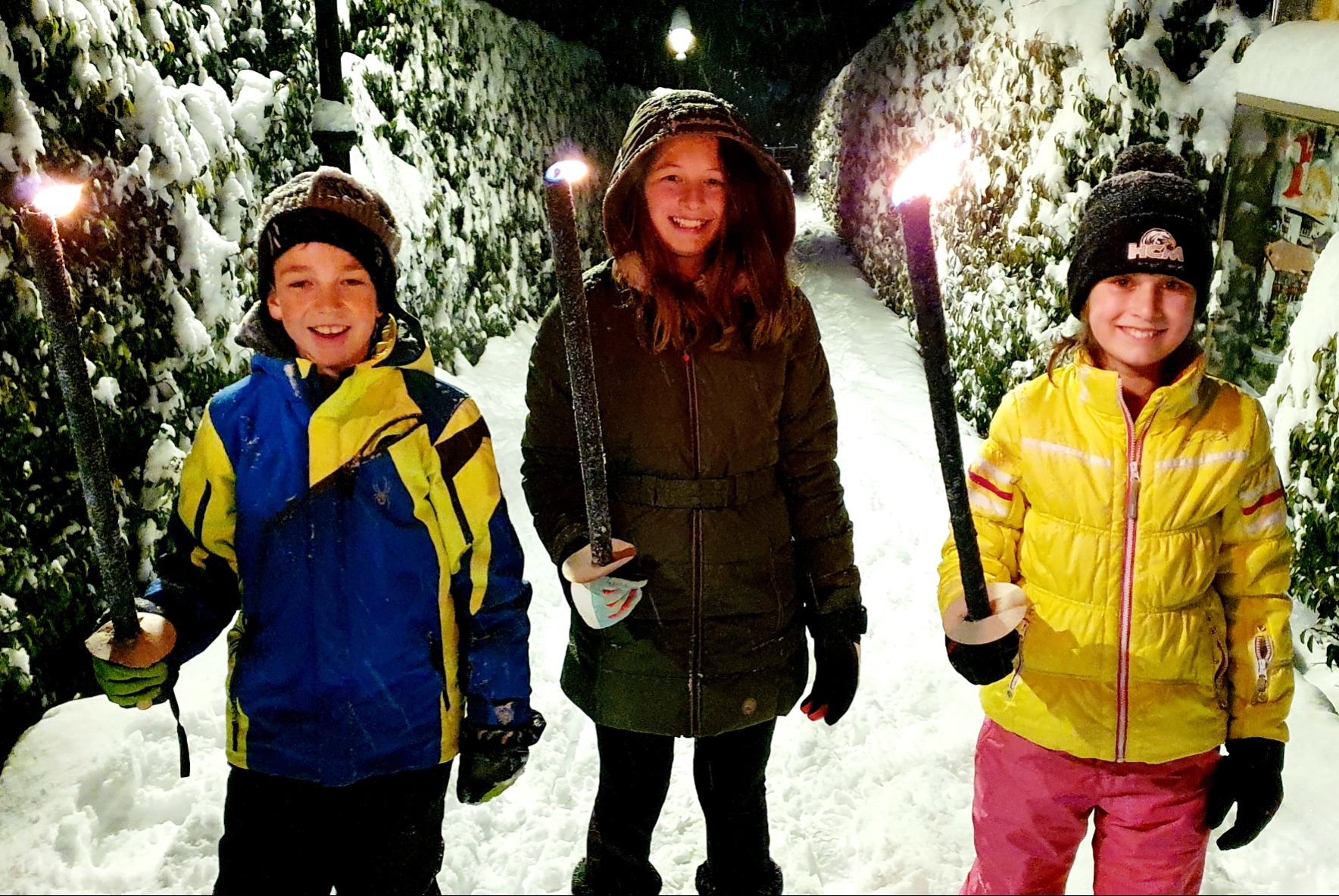 Was gibt es Spannenderes für Kinder, als eine Fackelwanderung durch dasa frisch verschneite Dorf Tirol?