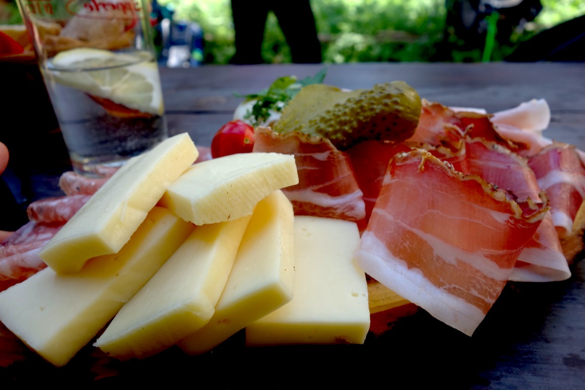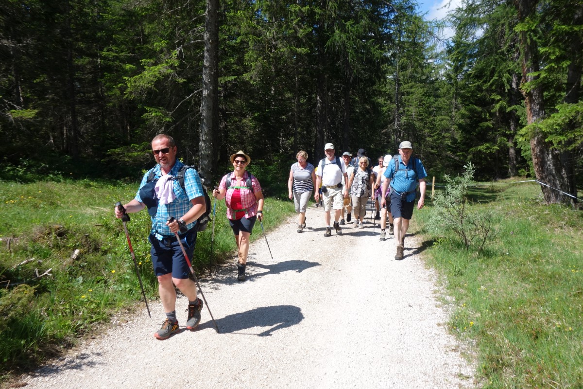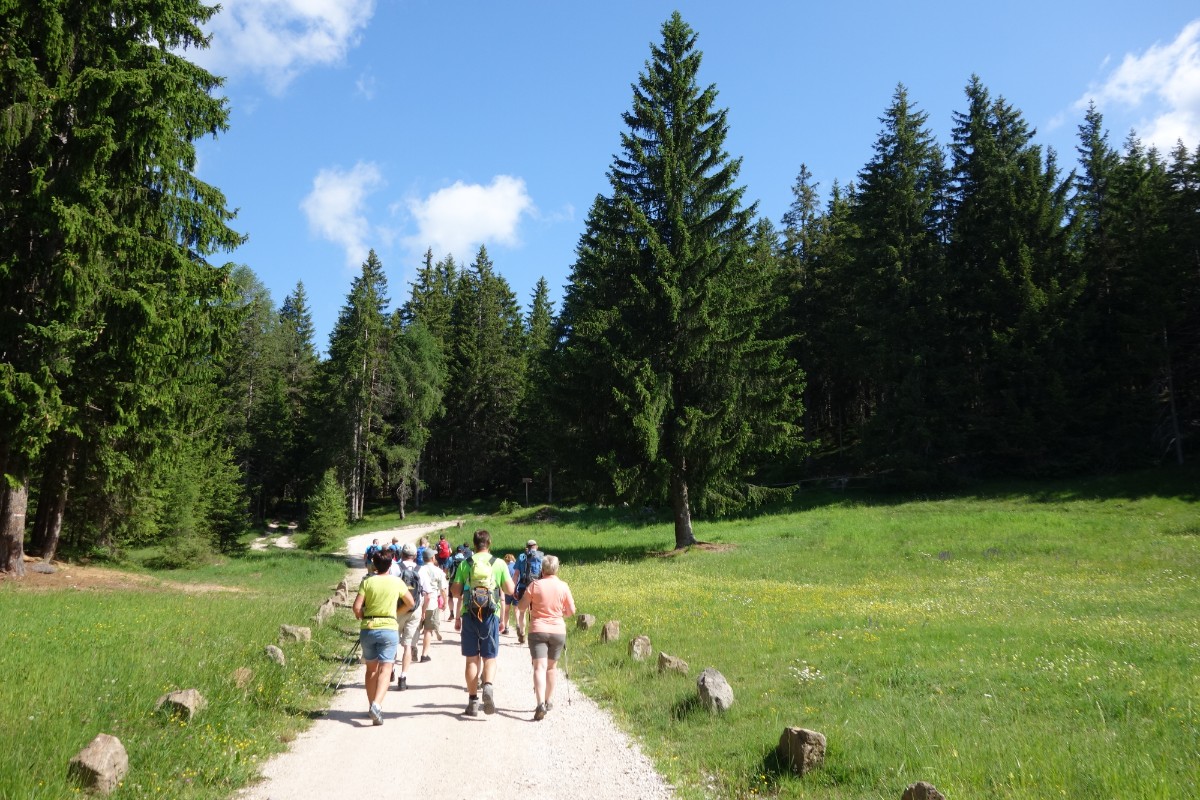 Auf einem breiten Forstweg ging es hinauf zum Felixer Weiher, einem der schönsten Badeseen Südtirols und weiter zur super Stärkung auf die Felixer Alm.