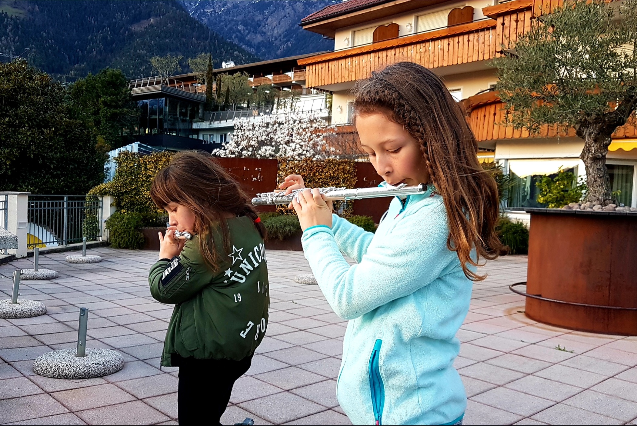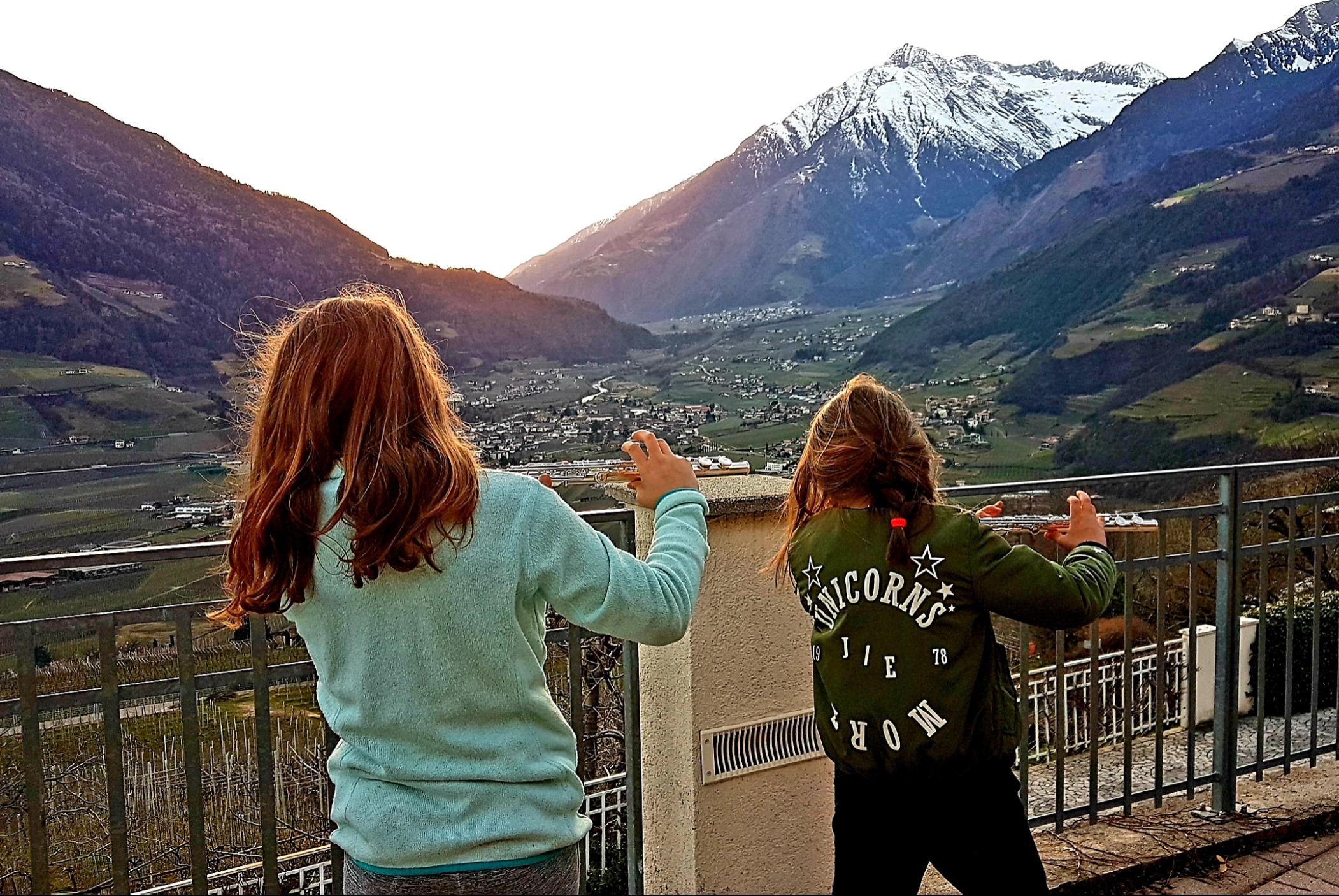 Punkt 18 Uhr haben sich im gesamten Staatsgebiet Menschen ans Fenster oder in den Garten gestellt, um Musik zu machen. Von Algund und Meran drangen musikalische Klänge herauf bis auf unsere Terrasse.
