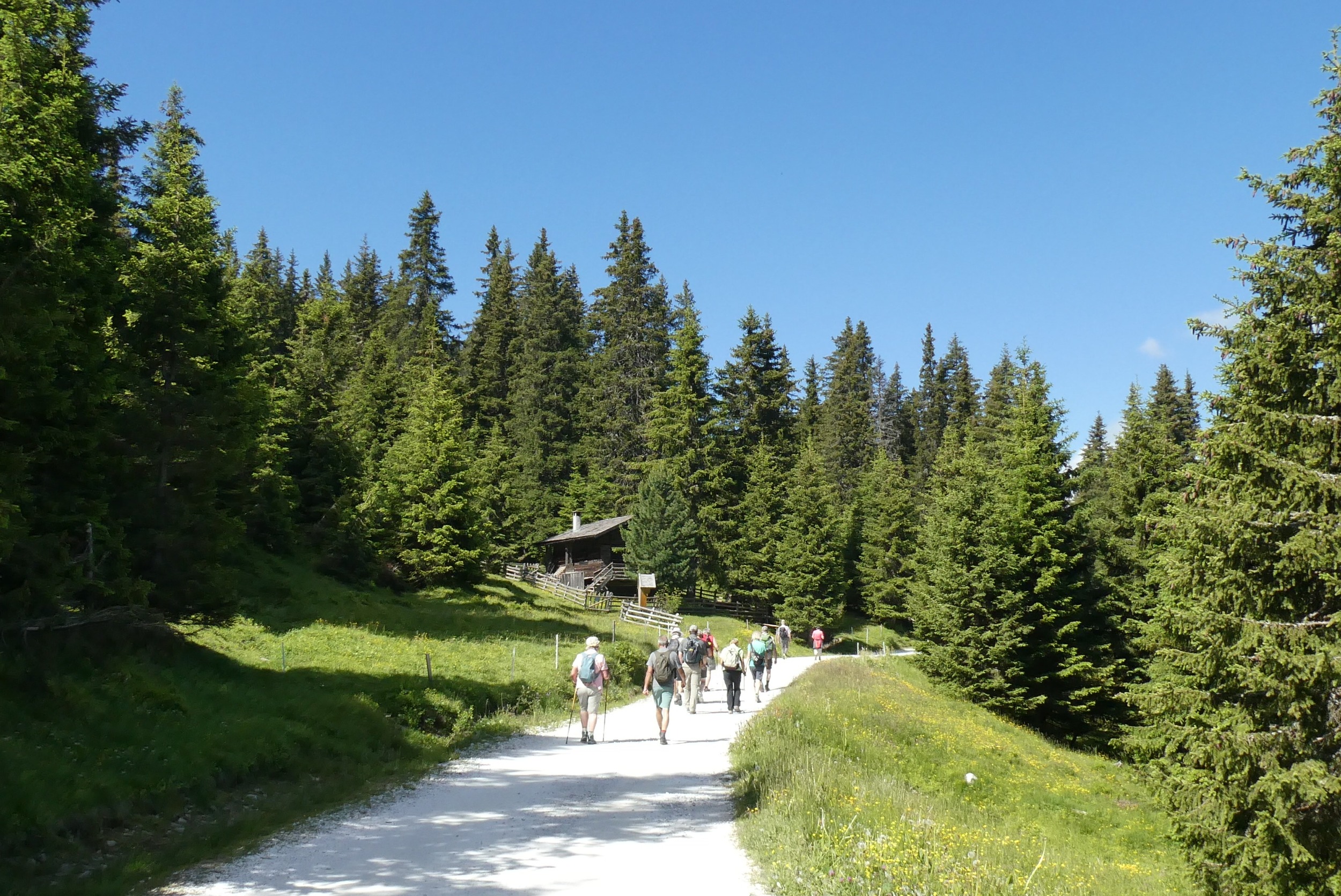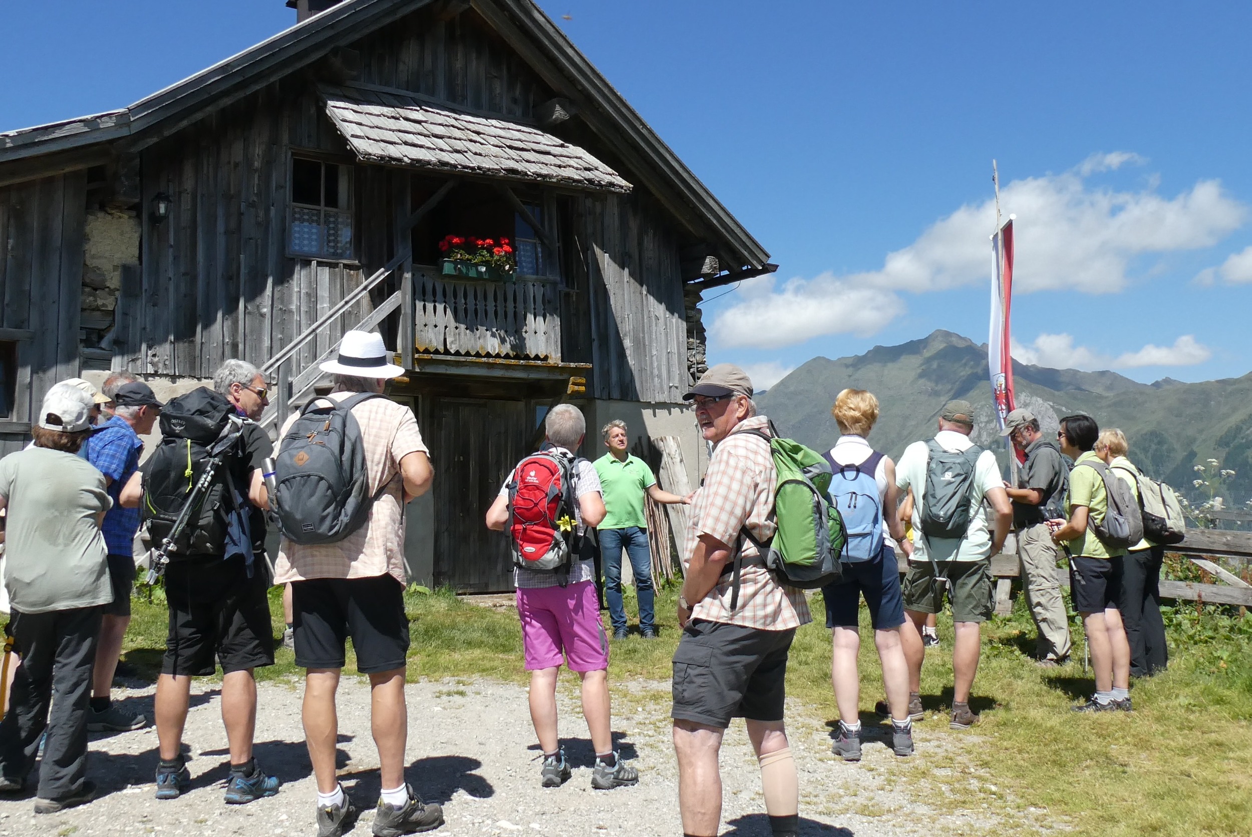 Hüttenwirt Walter zeigte uns seine Alm und erklärte uns in charmanter Art das Almleben "früher und heute", die Tiere, die Milchwirtschaft, sowie die Butter- und Käseherstellung.