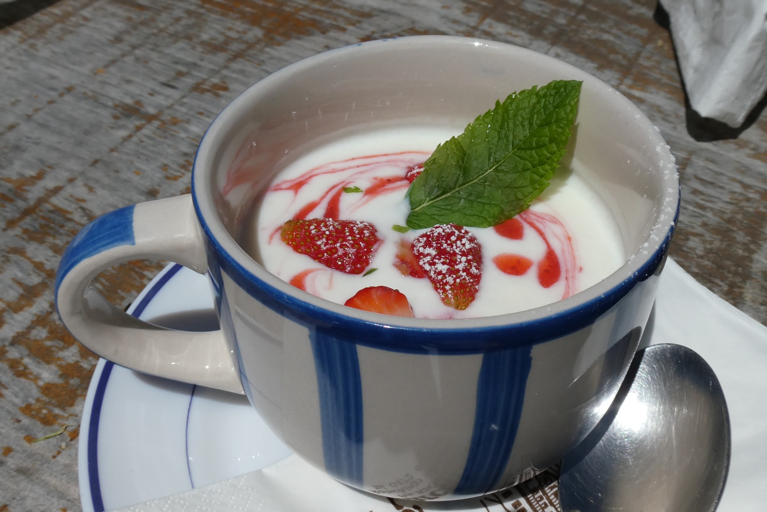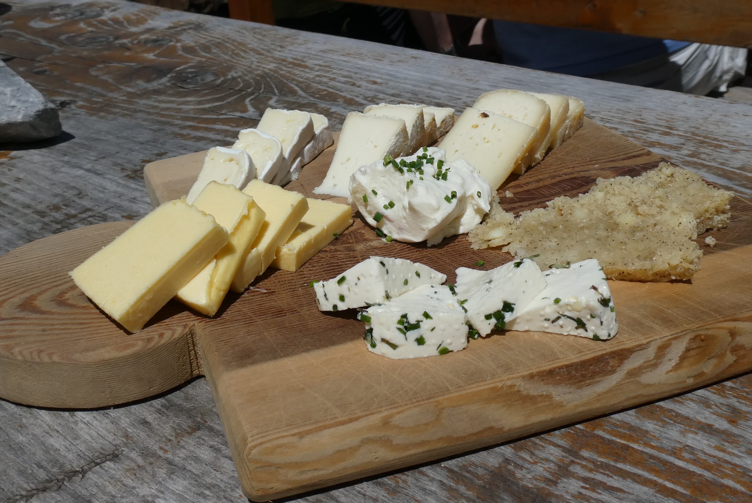 Anschließend verkosteten wir noch die hausgemachten Produkte wie frische Milch (am Morgen gemolken!), hausgemachte Butter und Käse, sowie das duftende, noch warme Brot und genossen den wunderbaren Ausblick.
