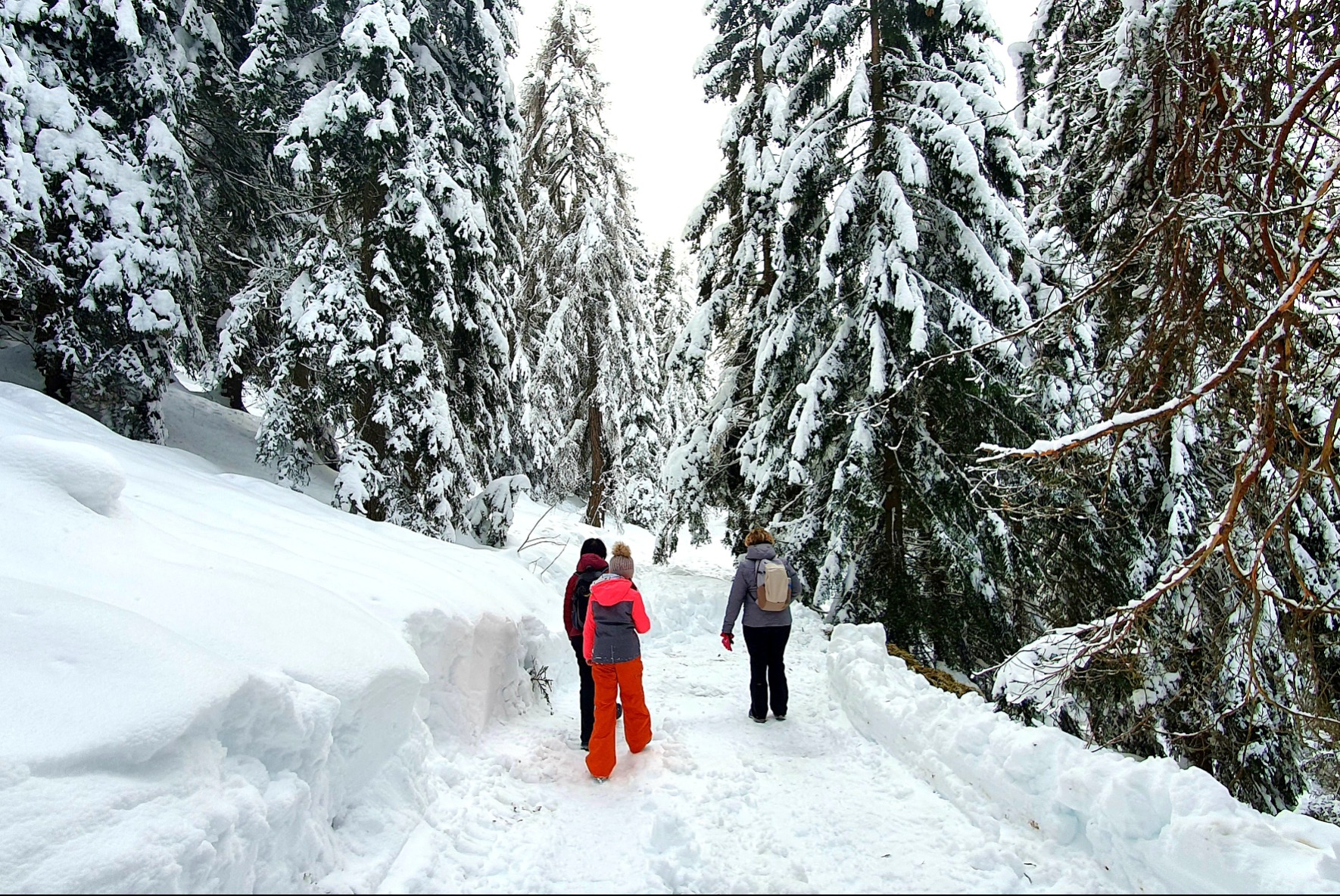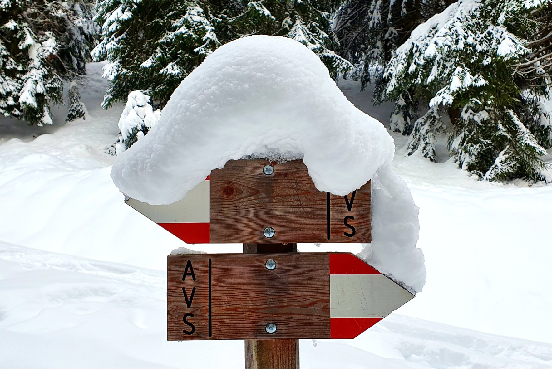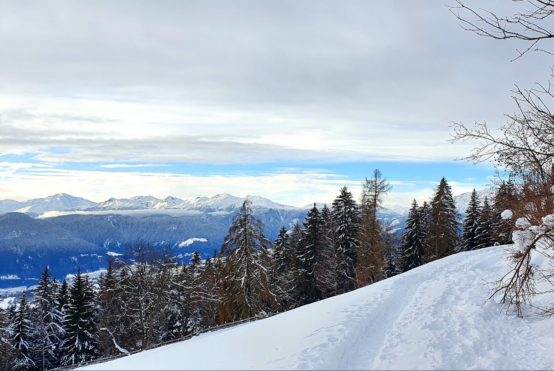 Die Winterroute führt vom Parkplatz Schermoos in Mölten gleich rechts ab (nicht links wie im Sommer) und durch frisch verschneite Tannenwälder und Lärchenwiesen gelangt man nach ca. 1,5 Stunden an den bekannten Gasthof Gschnoferstall.