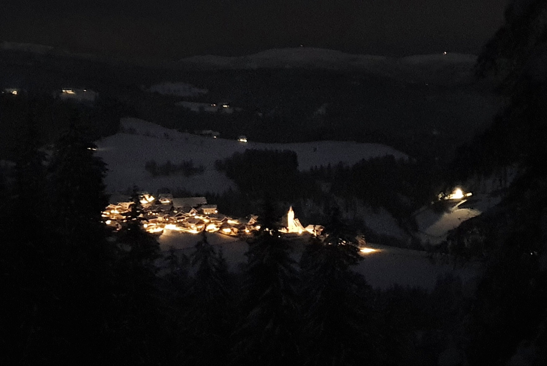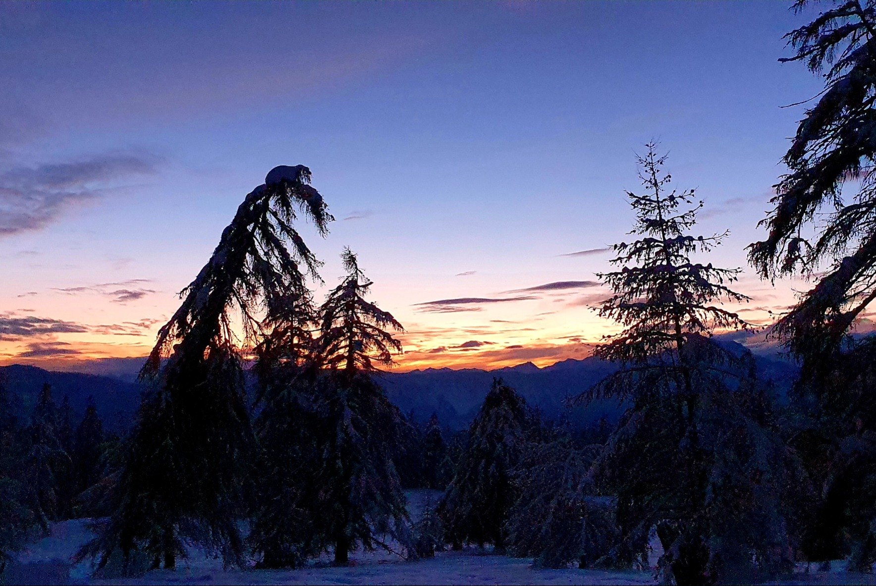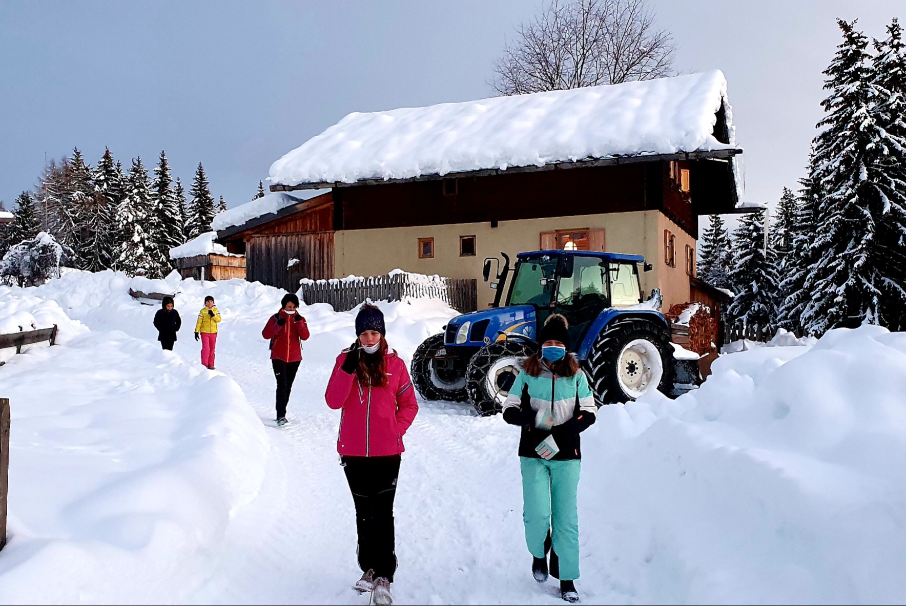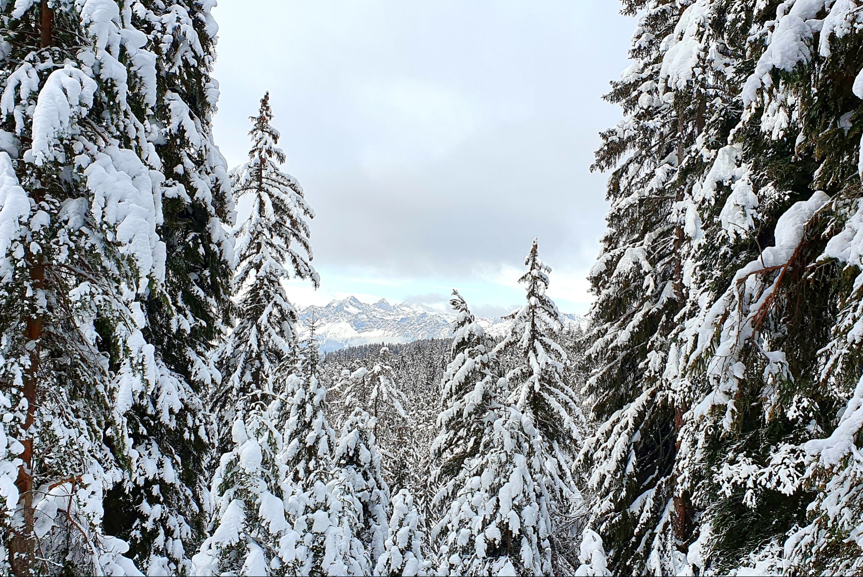 Die Winterroute führt vom Parkplatz Schermoos in Mölten gleich rechts ab (nicht links wie im Sommer) und durch frisch verschneite Tannenwälder und Lärchenwiesen gelangt man nach ca. 1,5 Stunden an den bekannten Gasthof Gschnoferstall.