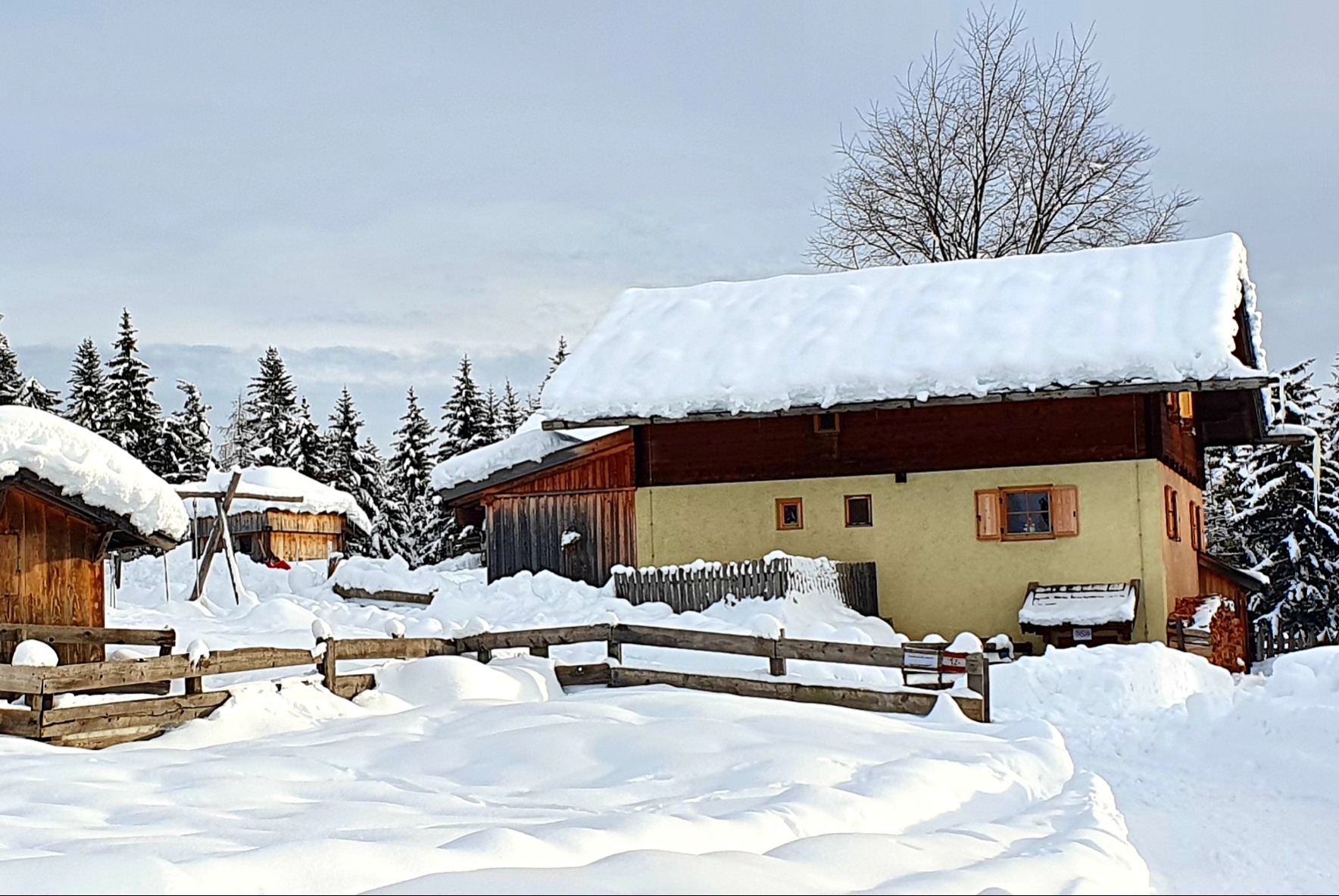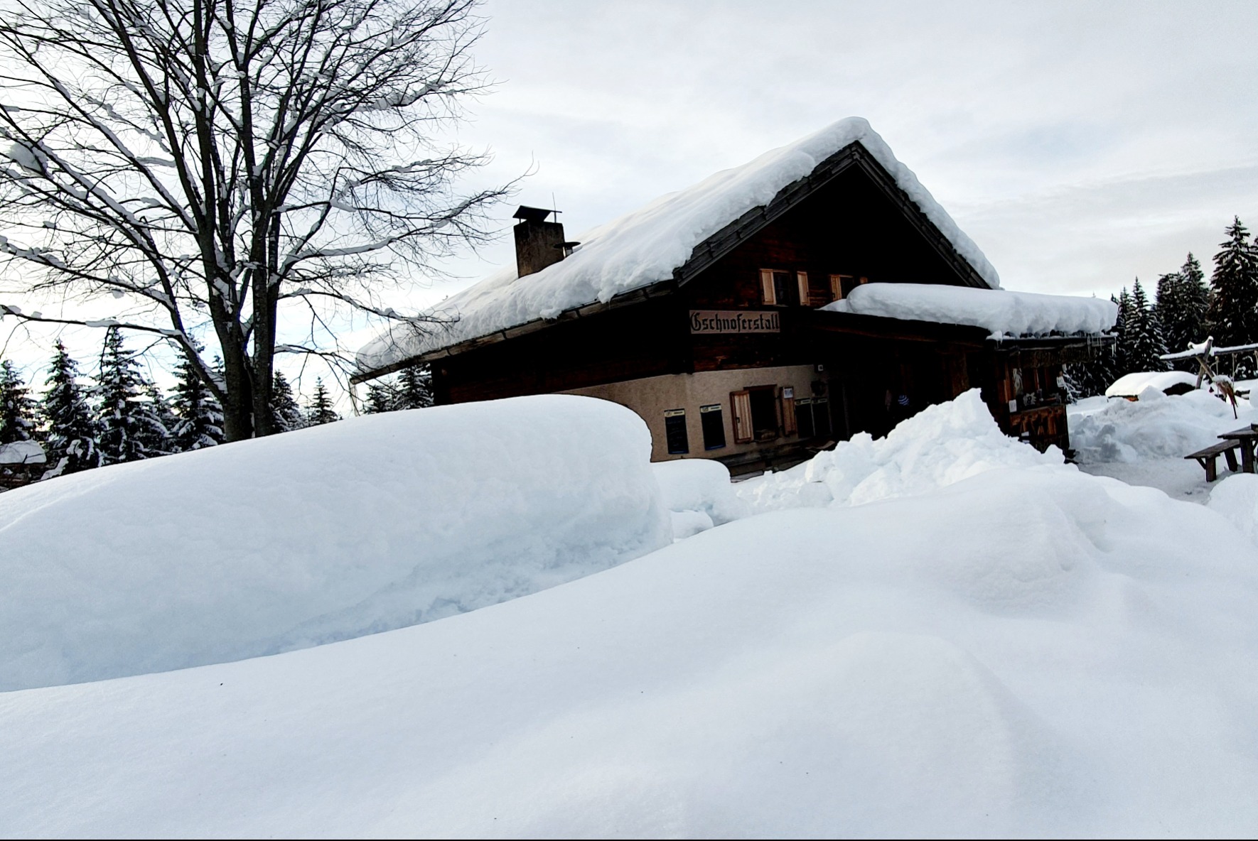 Viele unserer Gäste kennen den Gschnoferstall auf den Lärchenwiesen des Salten von unseren Hauswanderungen. Aber im weißen Kleid haben Sie ihn noch nicht gesehen, stimmt´s!?