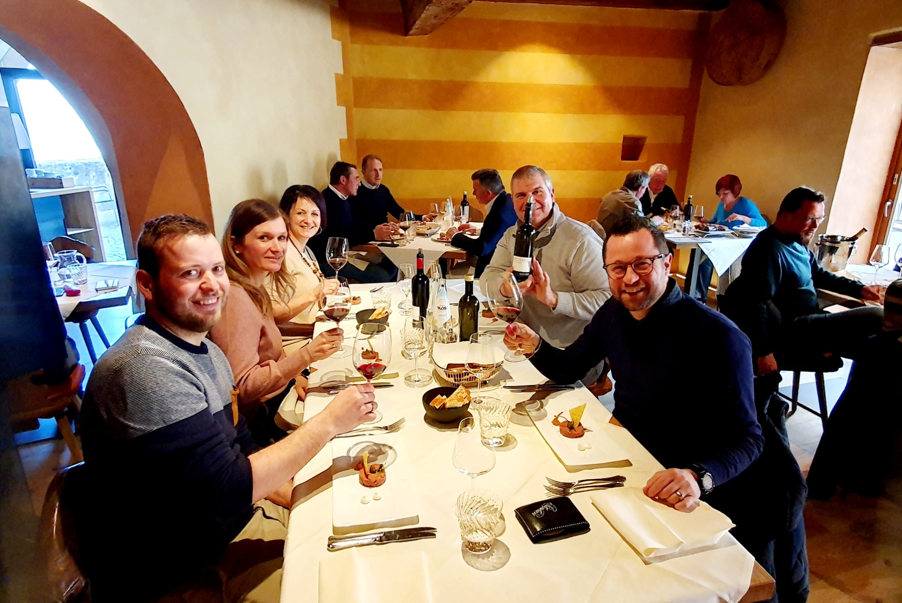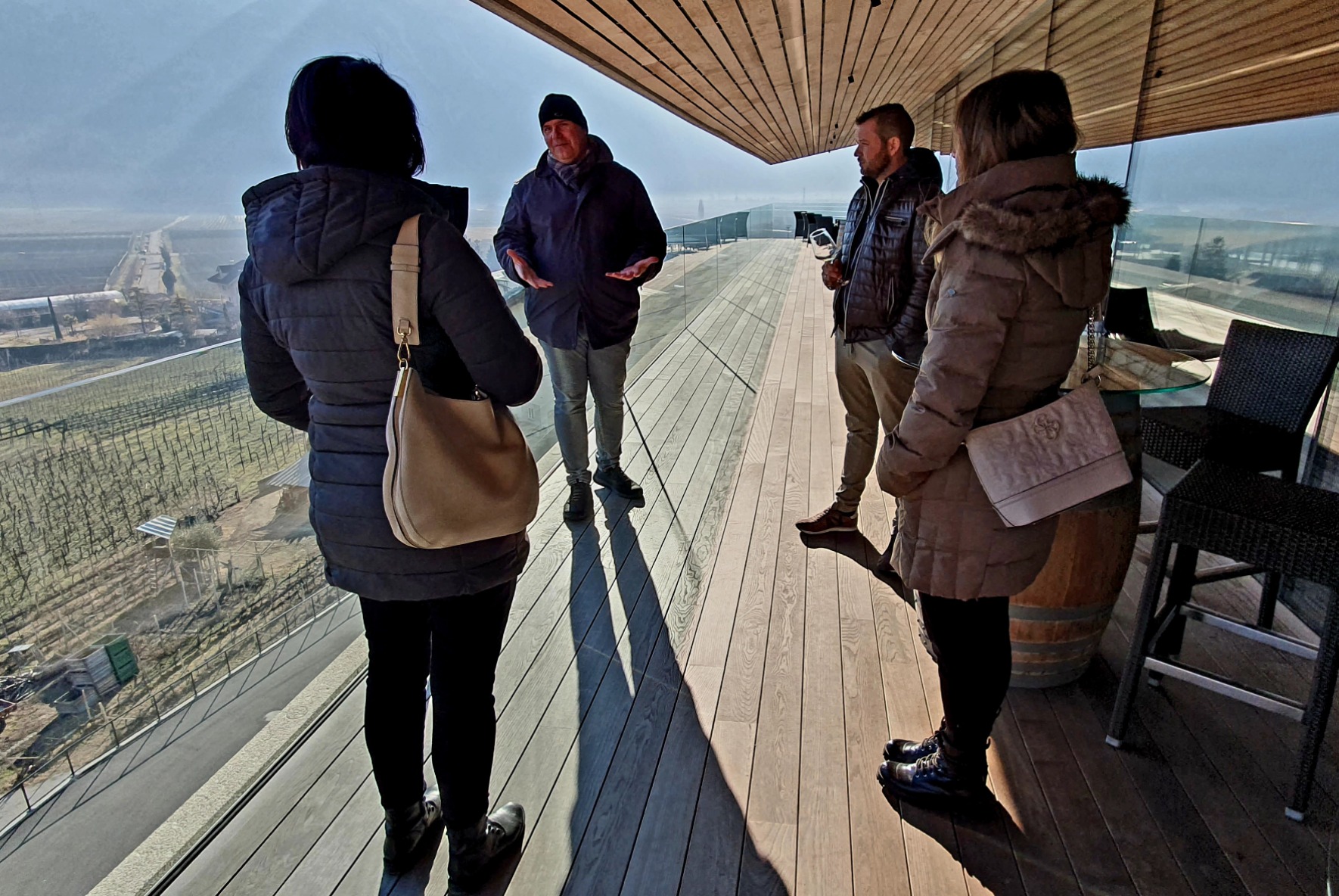 Christian Gschnell entführte uns zuerst in einen höher gelegenen Weinberg, wo er uns bei herrlich sonnigem Winterwetter die einzelnen Lagen der Kellerei erklärte. Danach ging es in die neu eröffnete Kellerei und weiter in den tiefen Keller mit den Barrique-Fässern. Es folgte eine ausgiebige Verkostung, nicht nur des neuen Jahrgangs der "Krause-Hausmarke", sowie ein köstliches Mittagessen in einem Restaurant.