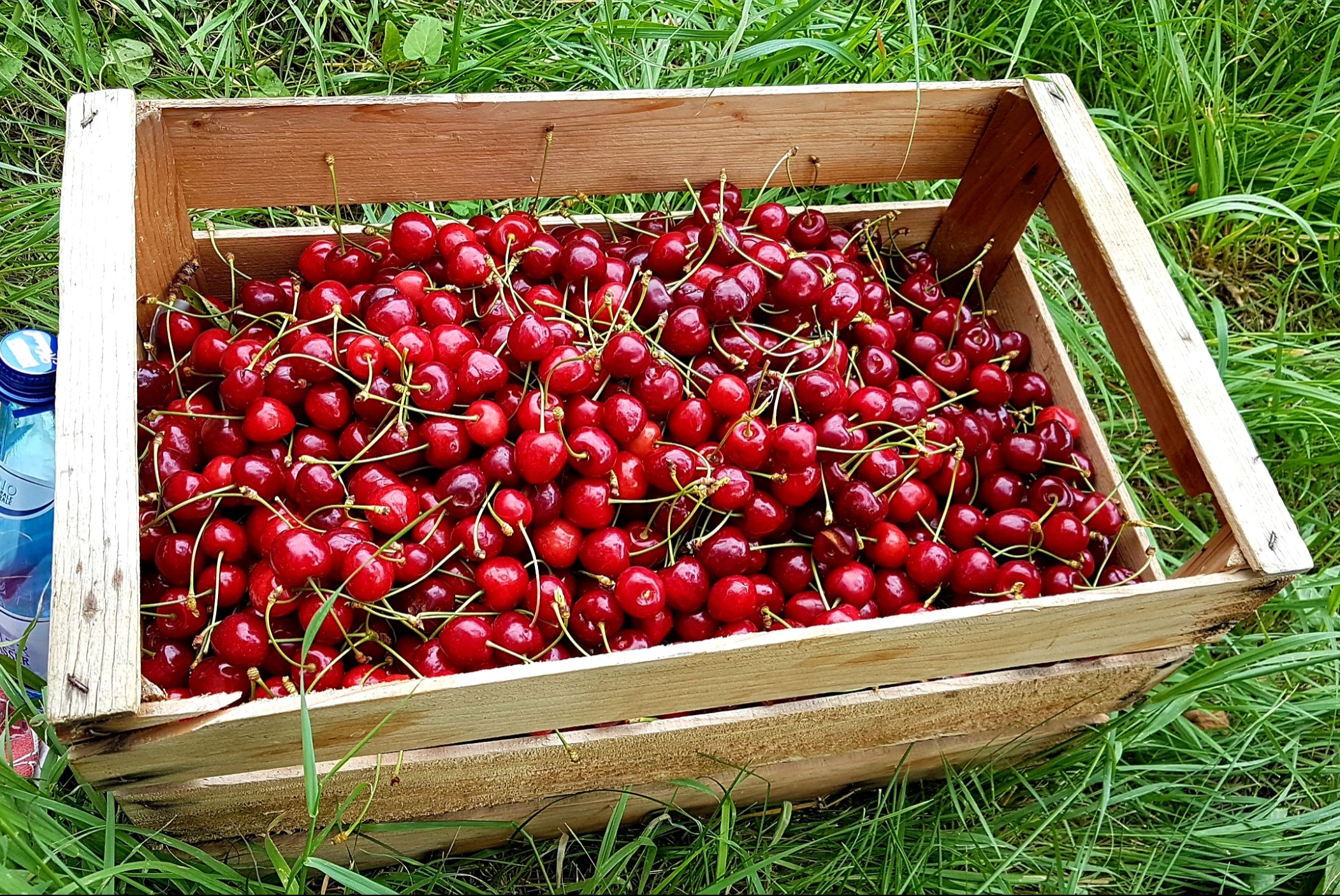 Bereits 2 Monate später durften wir die Bäume bereits abernten und es kamen über 100 Kilo saftiger Dorf Tiroler Kirschen zusammen!