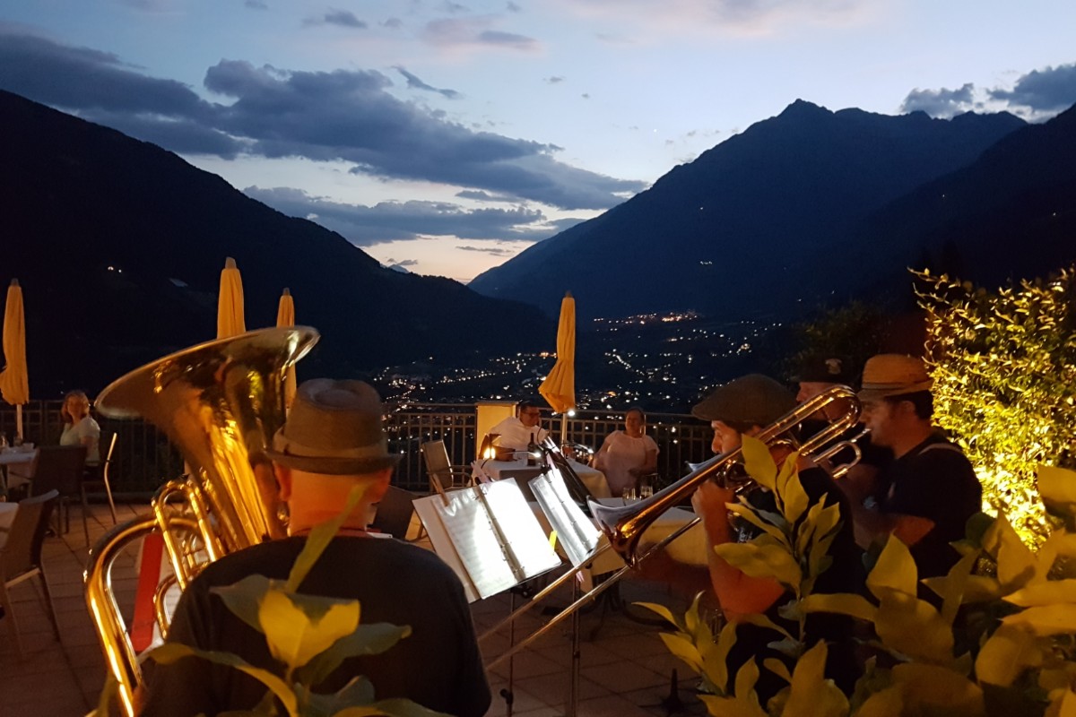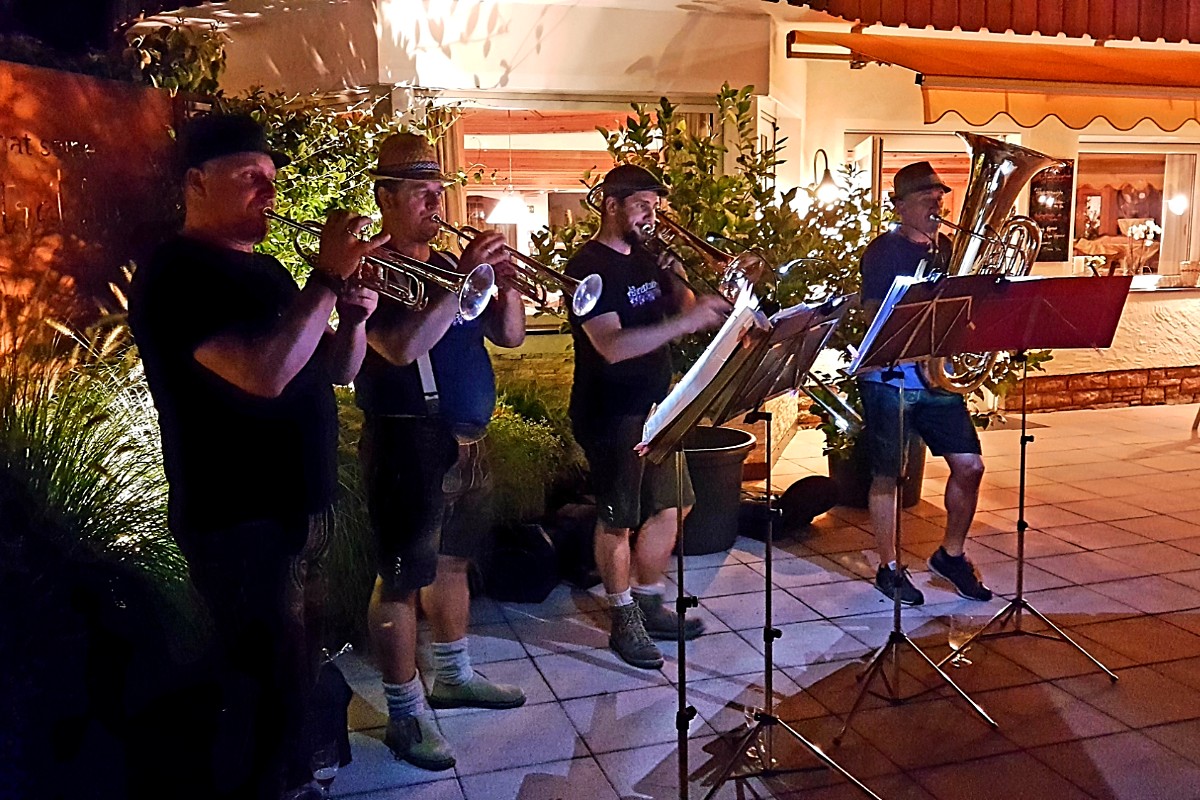 An einem lauen Sommerabend, wie er perfekter nicht sein konnte, genossen unsere Gäste ein wunderbares Konzert der Blechbläsergruppe "Brennet Liab".