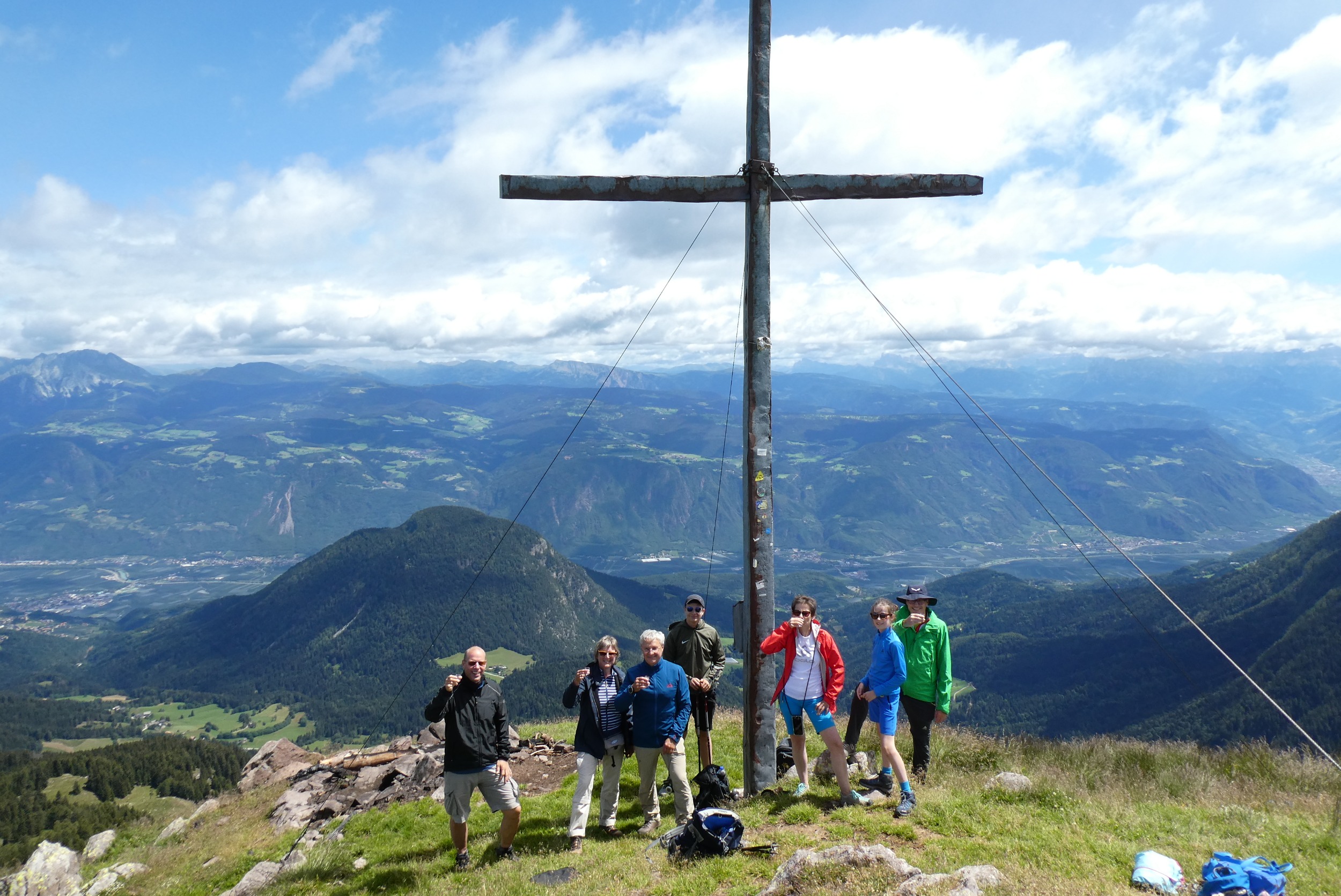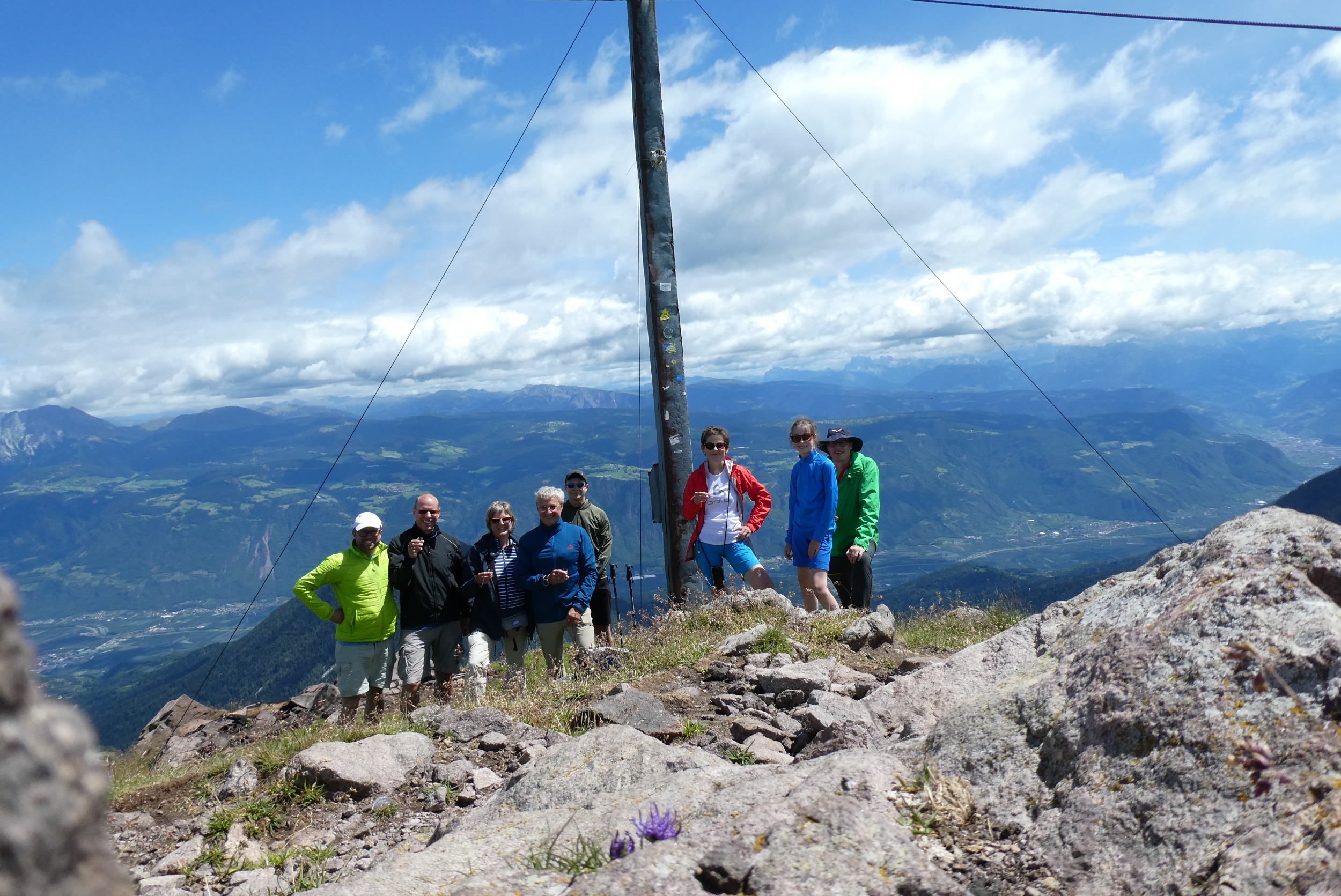 Unsere Gipfeltour, anläßlich der "Wanderwoche" führte uns auf die kleine Laugenspitze (2297m). Dieser Gipfel ist bekannt für den Ausblick auf unzählige Bergmassive. Er reicht von der Texelgruppe und den Stubaier Alpen im Norden über die Dolomiten im Osten bis hin zur Brentagruppe im Süden!