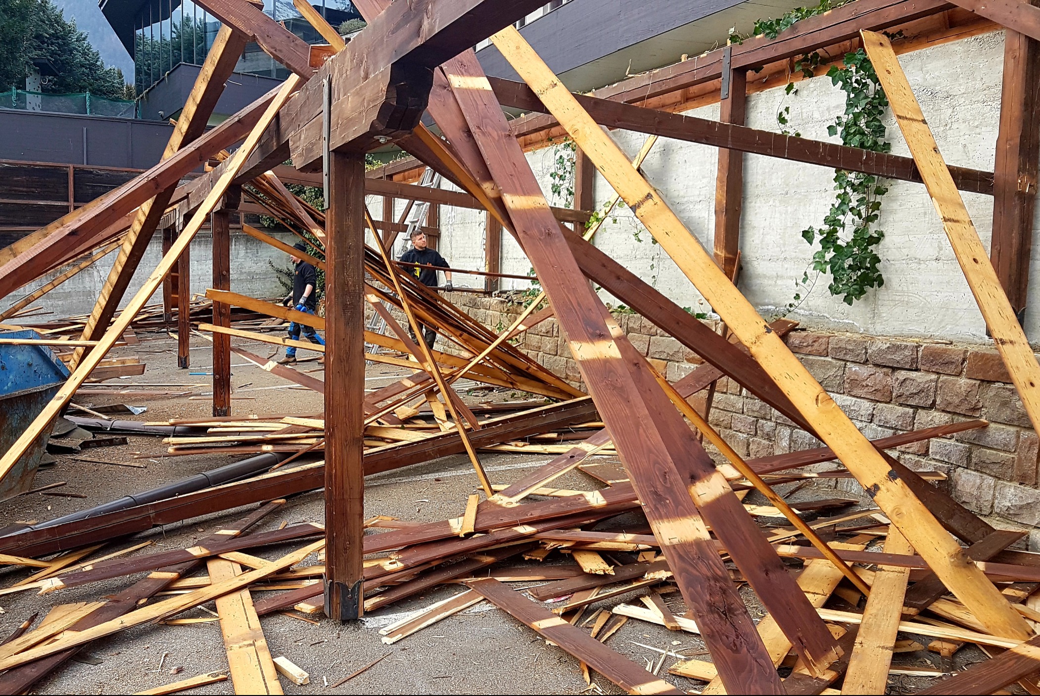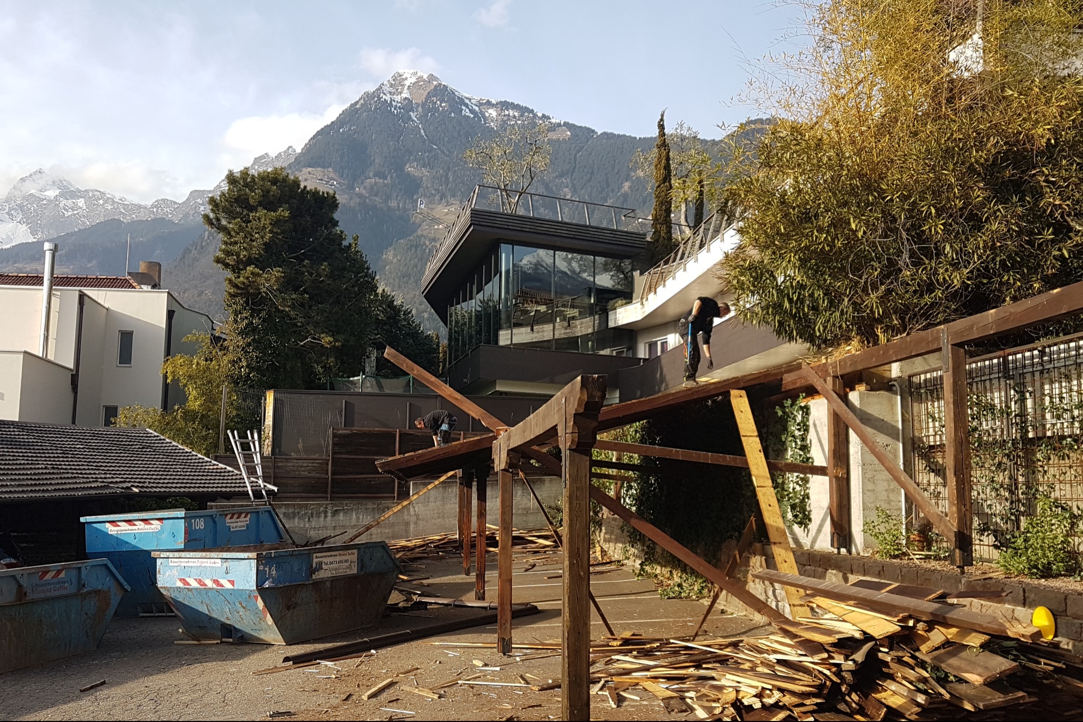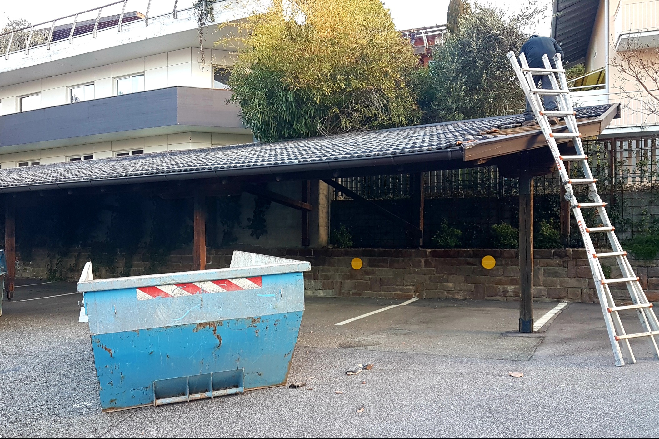 Am 27. Januar ging´s los mit dem Abbruch unserer Parkplatzüberdachung.