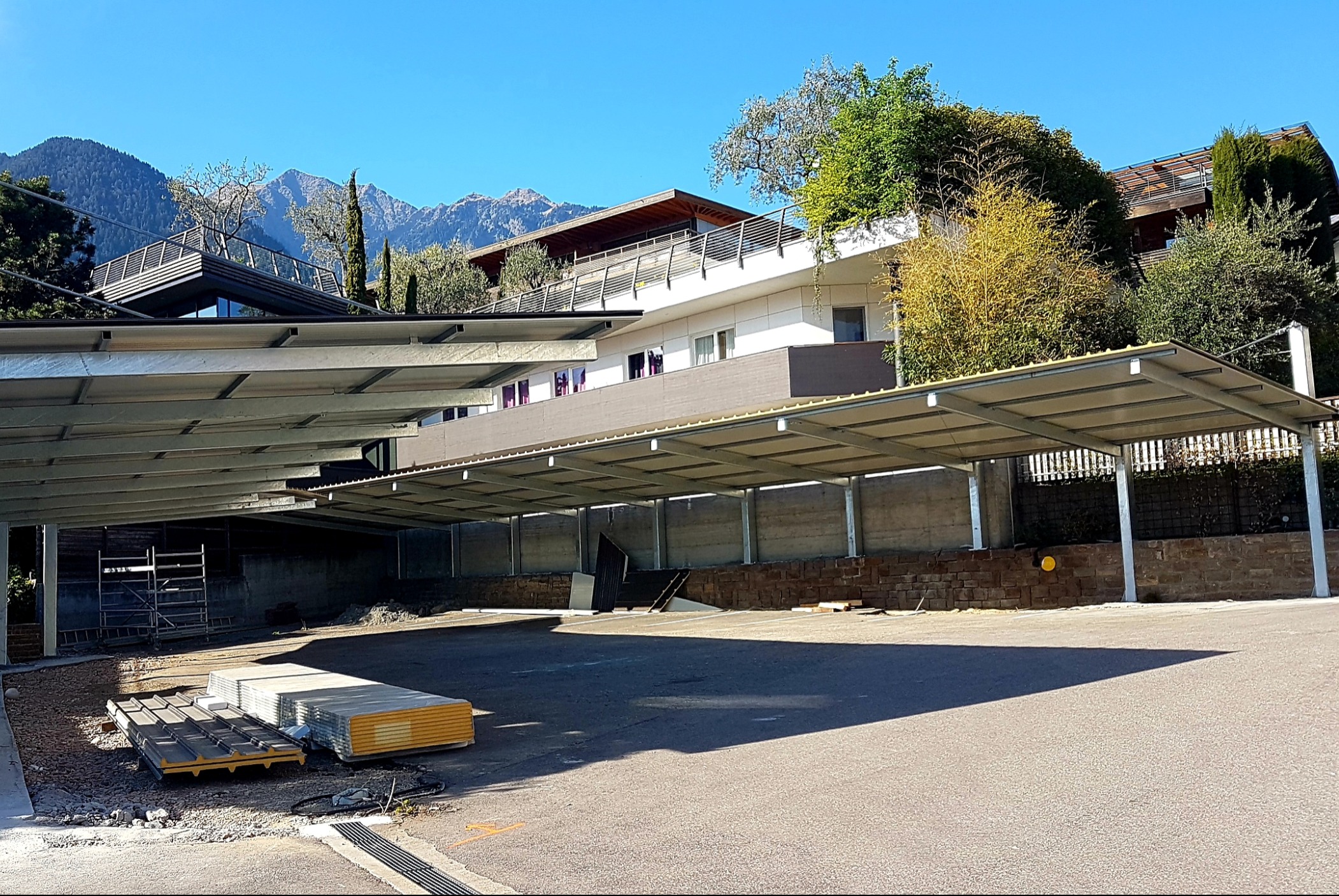 Bis zum Frühling entsteht nun eine neue Überdachung in Leichtbauweise, ohne lästige Säulen und mit mehr Parkkomfort für Ihren "Liebling auf 4 Rädern"!