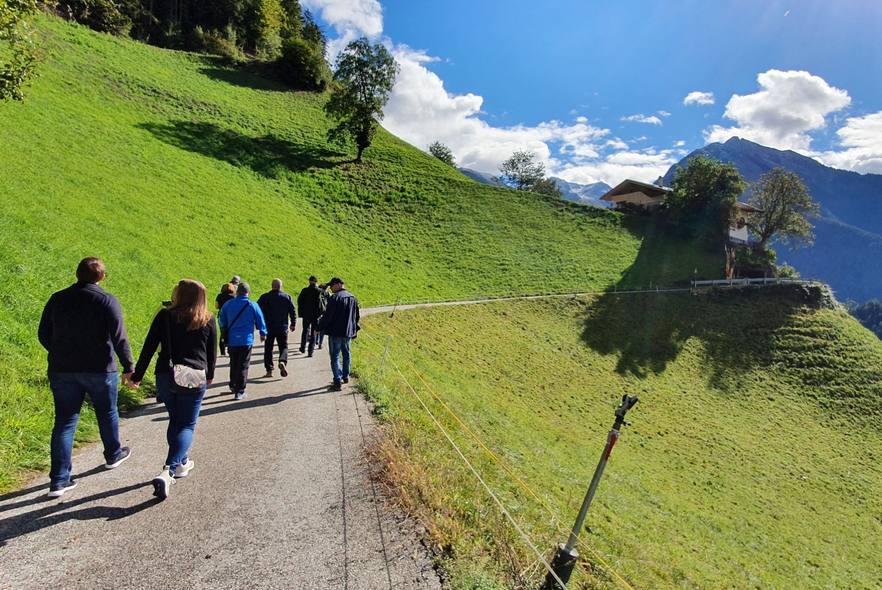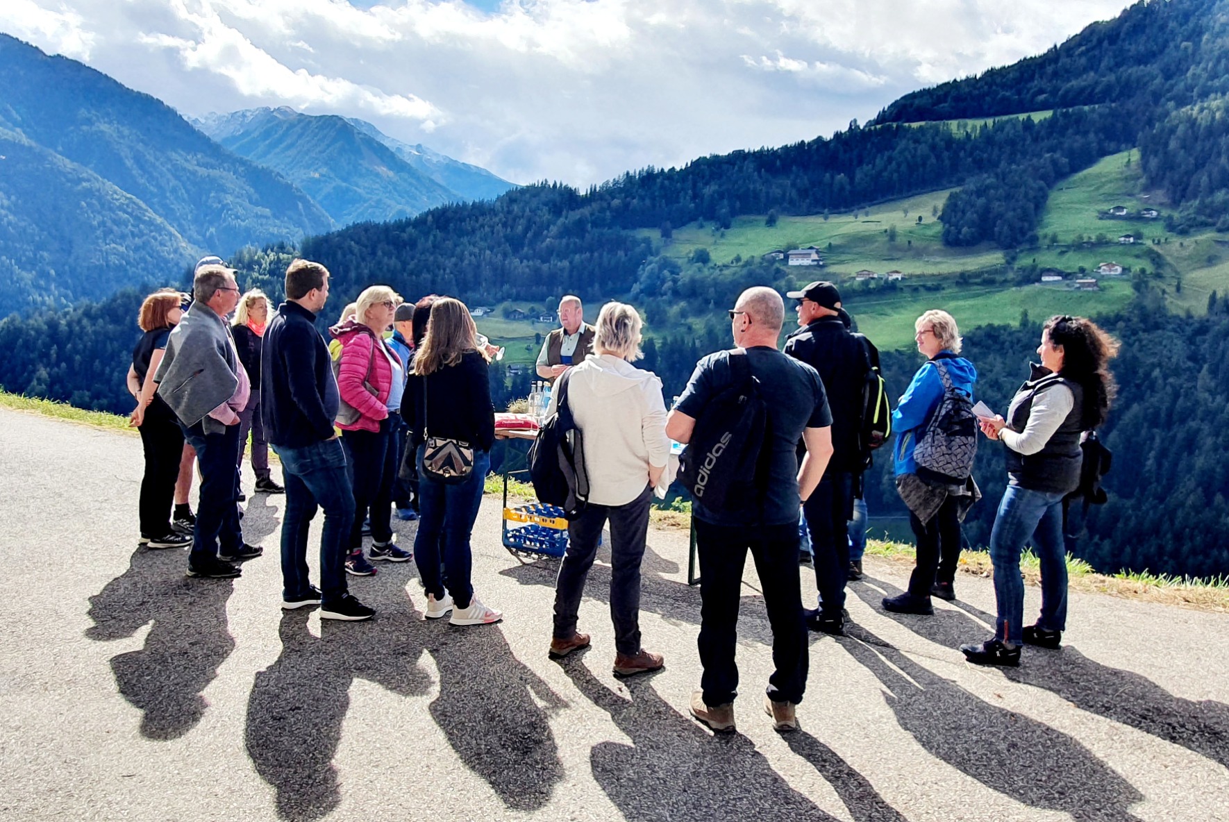 In gewohnt charmanter Art brachte Walter unseren Gästen (bei einem selbstkreierten Aperitiv) alles Wissenswerte zum Thema Leben auf einem Bergbauernhof in der heutigen Zeit bei und führte alle über seinen Hof auf 900 Metern Seehöhe.