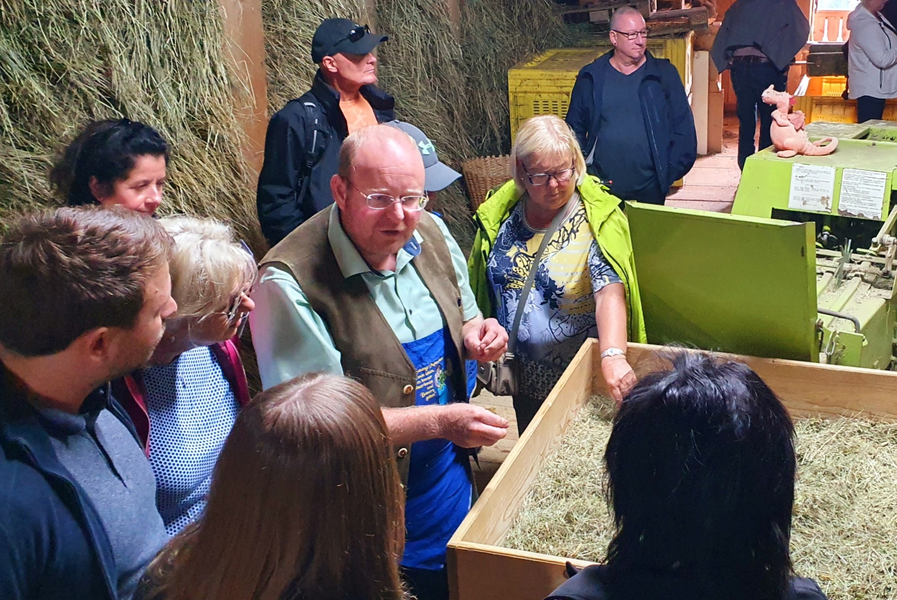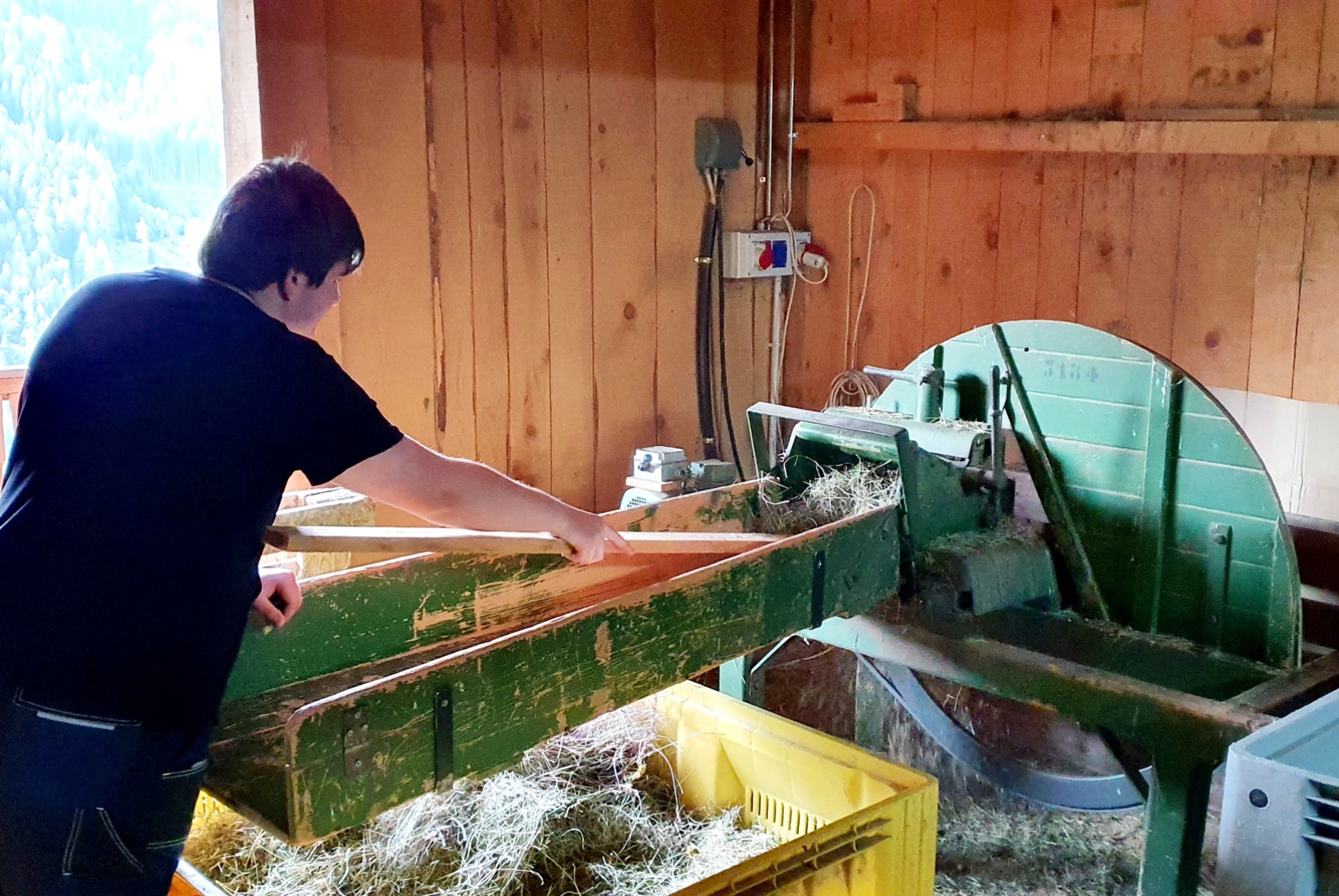 Nicht fehlen durfte dabei der Stall mit den Tieren, die Scheune mit dem zertifizierten Bio Bergwiesenheu und natürlich die Herstellung der Heu- und Hanfkissen.