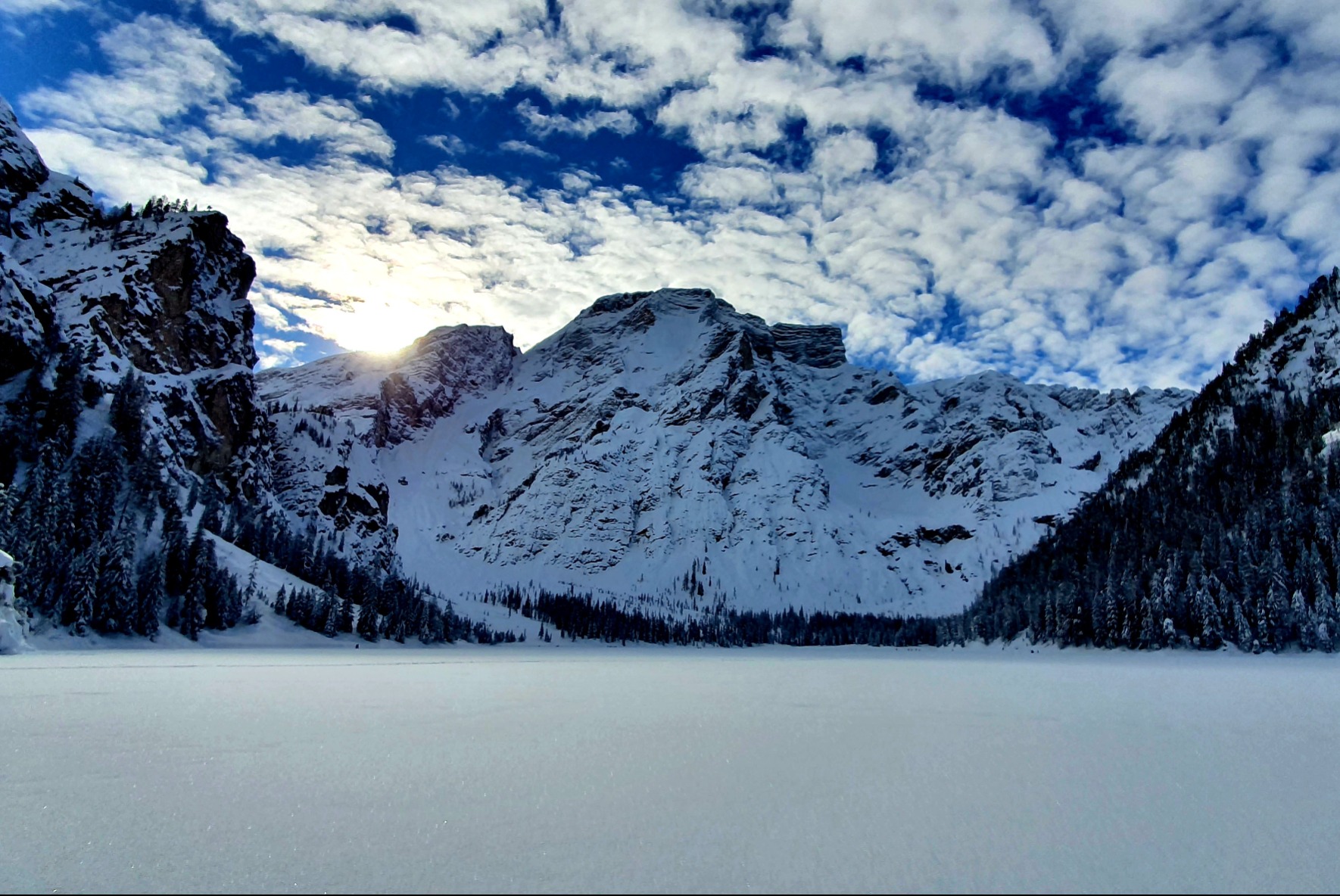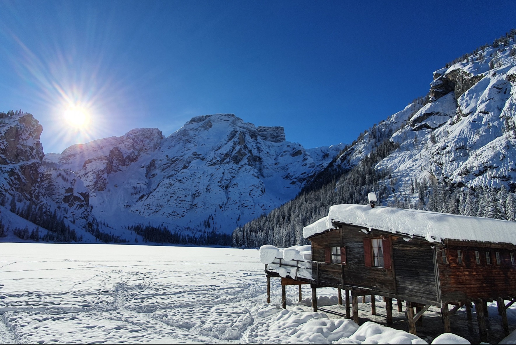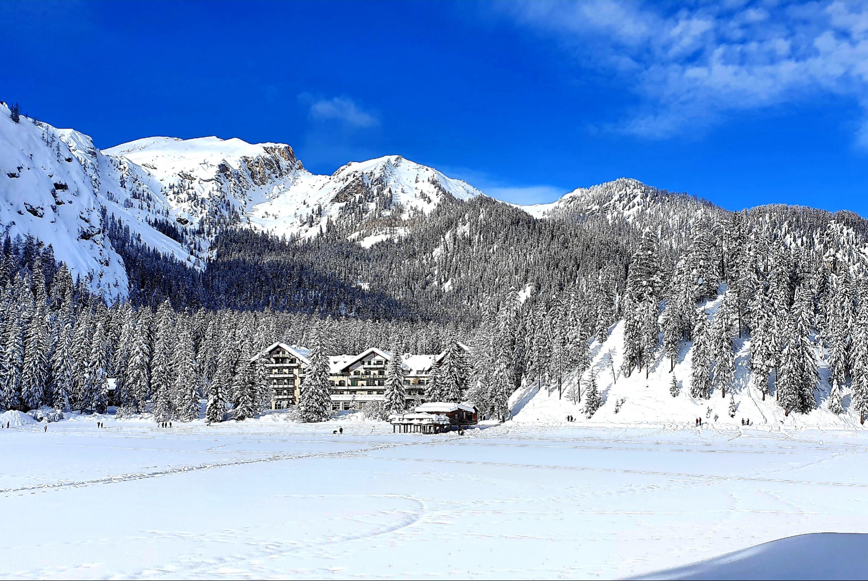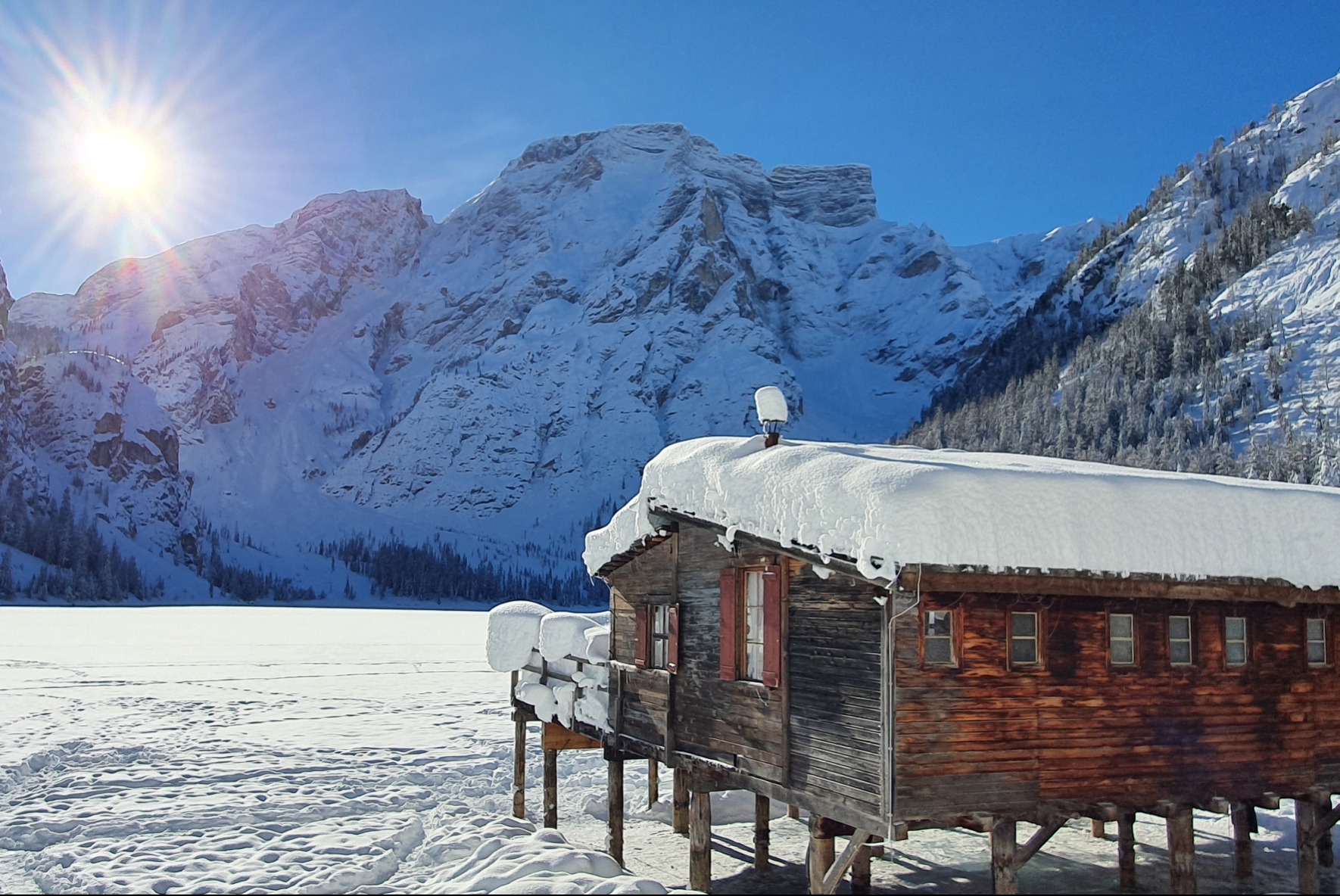 Es ist der Pragser Wildsee im oberen Pustertal, Sie haben ihn sicher schon in einer der vielen Tv-Serien (z.B. "Die Bergpolizei" mit Terence Hill) oder einem Werbespot (z.B. Auxmoney) gesehen.
