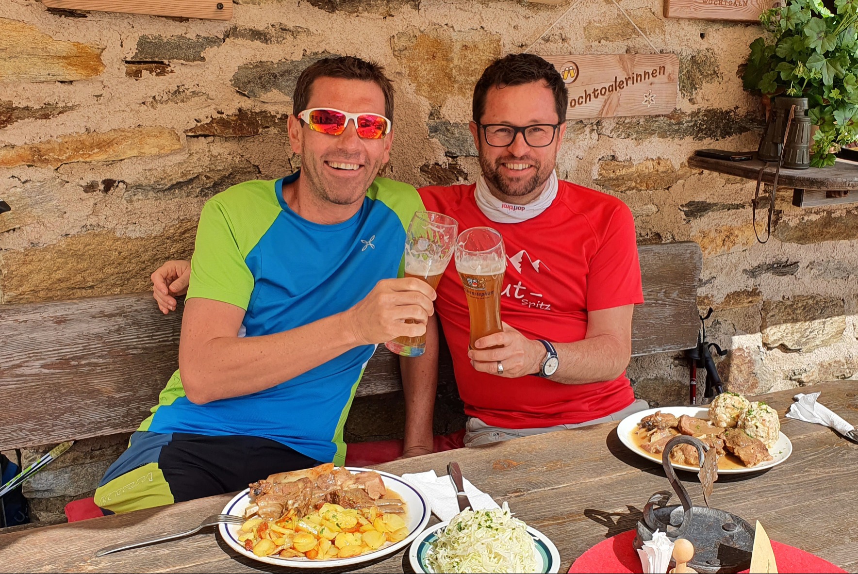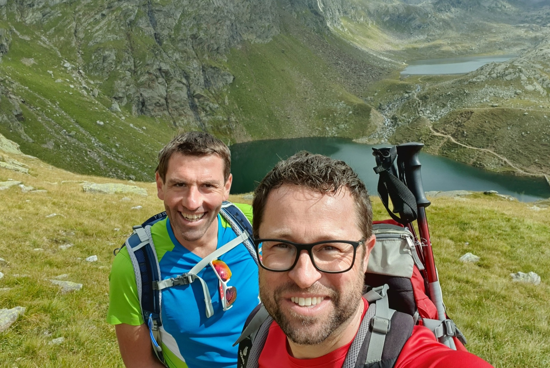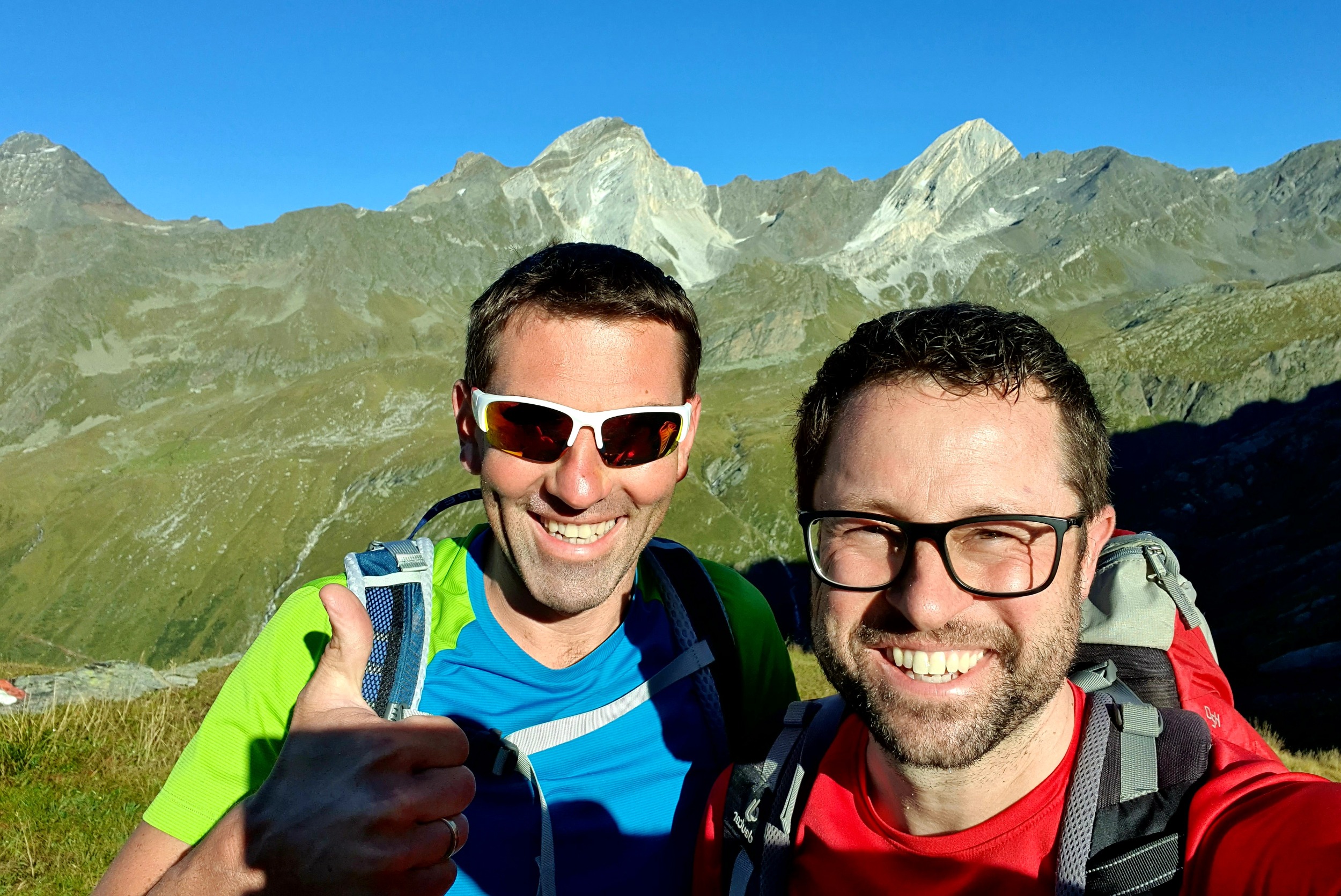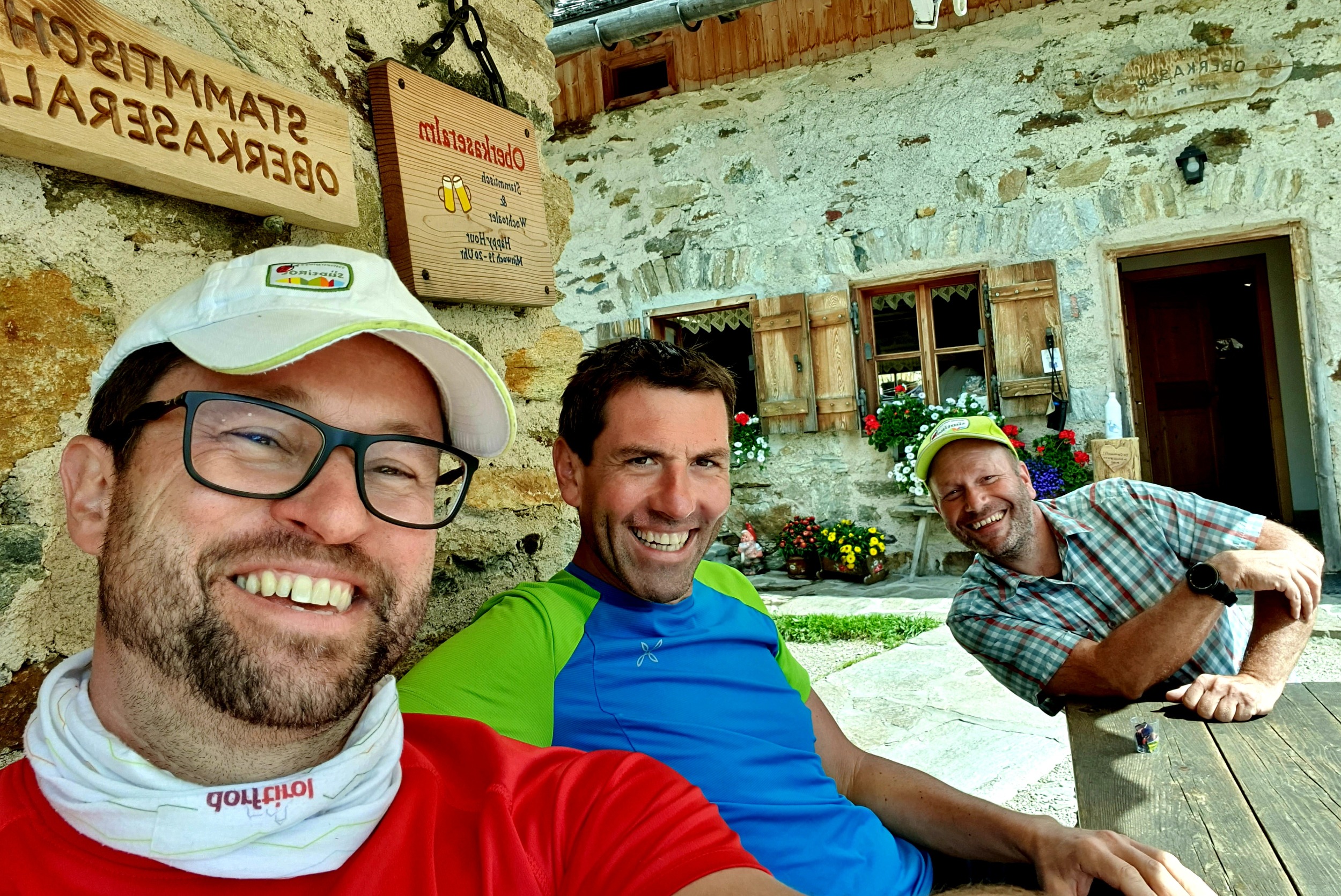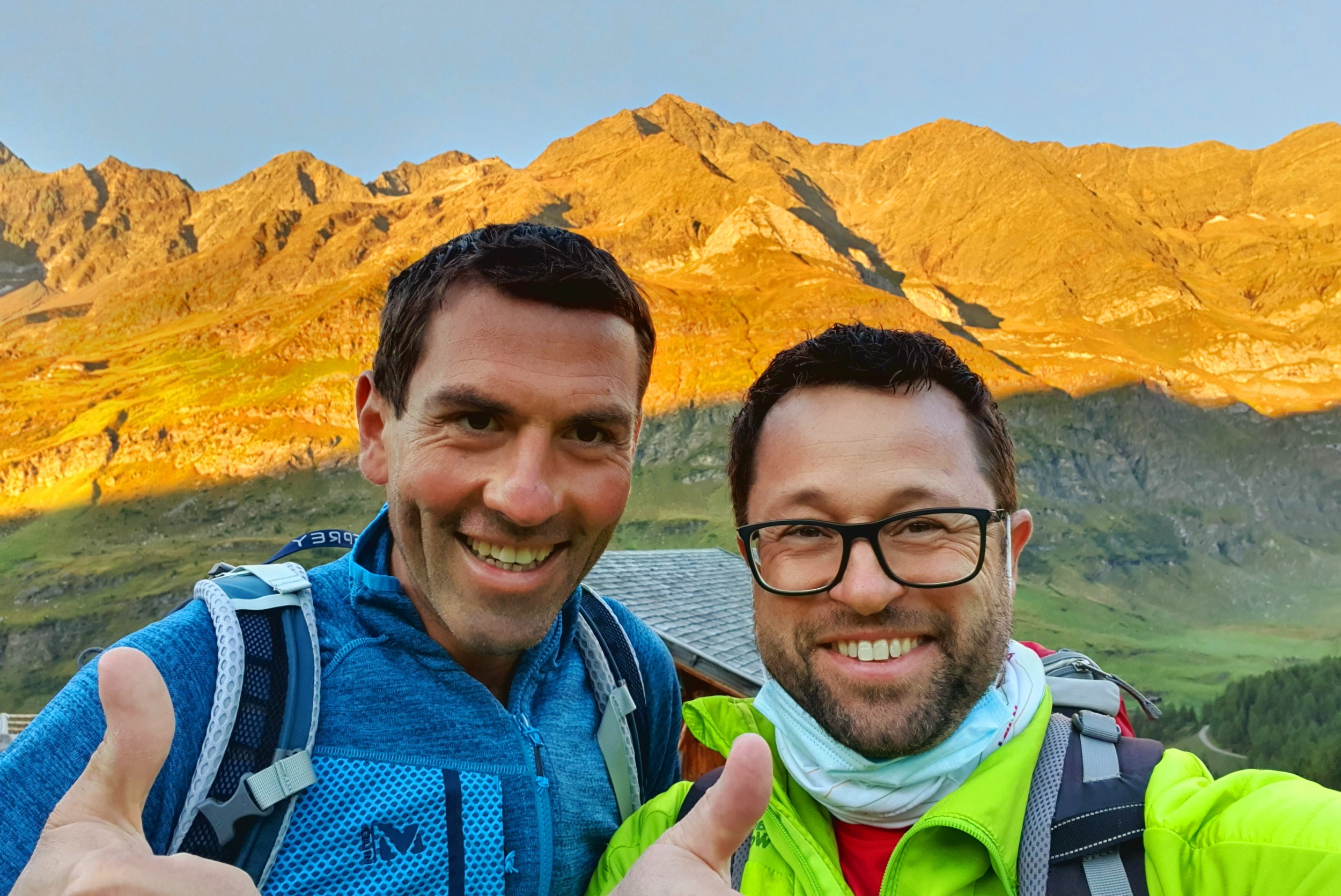 Früh morgens ging es mit einem Taxi nach Pfelders zur Faltschnalalm. Dort starteten unser Chef Stephan und sein Freund Hannes bei Sonnenaufgang zur Tour.