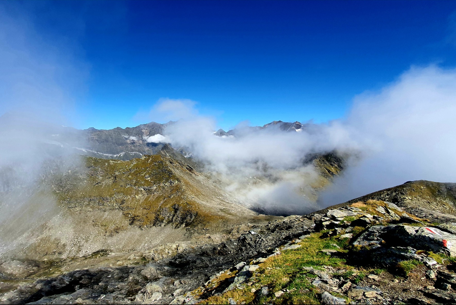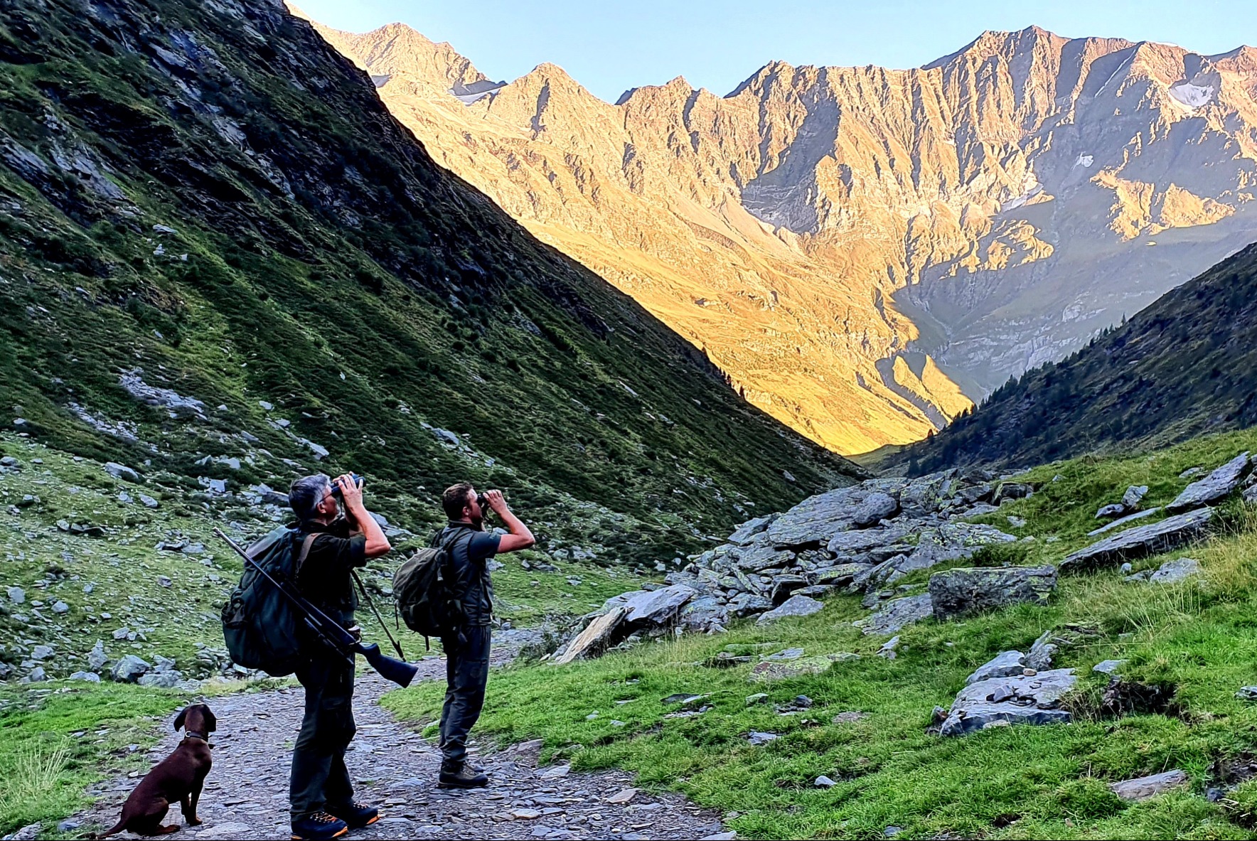 Mäßig ansteigend ging es durch das Faltschnaltal hinauf auf das Faltschnaljoch. Dort wurden die beiden mit einem traumhaften Rundumblick auf unzählige Dreitausender wie Hohe Wilde, Seelenkogel, Hohe Weiße oder Lodnerspitze belohnt.
