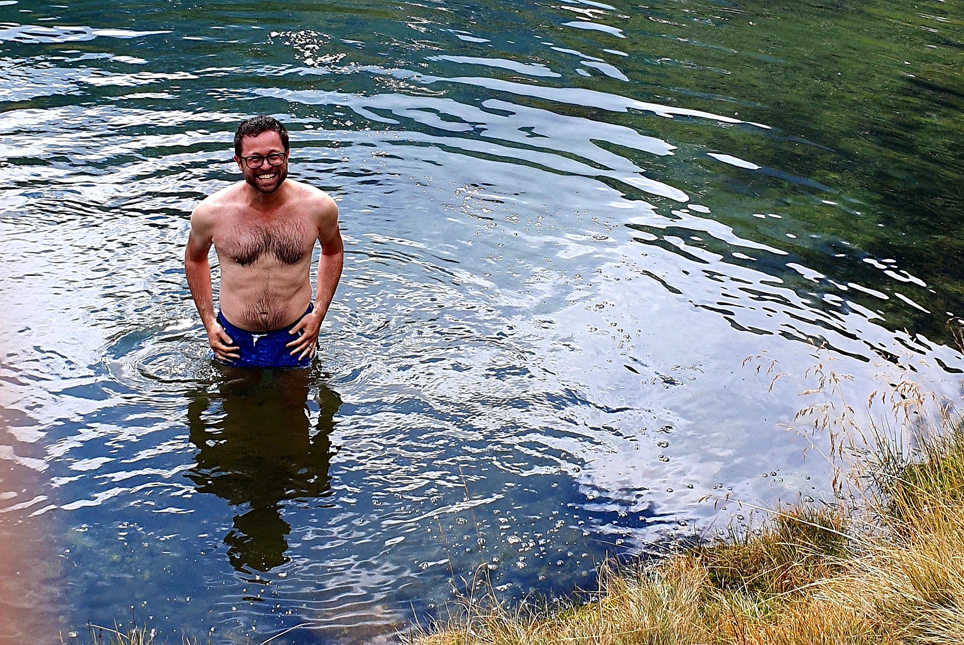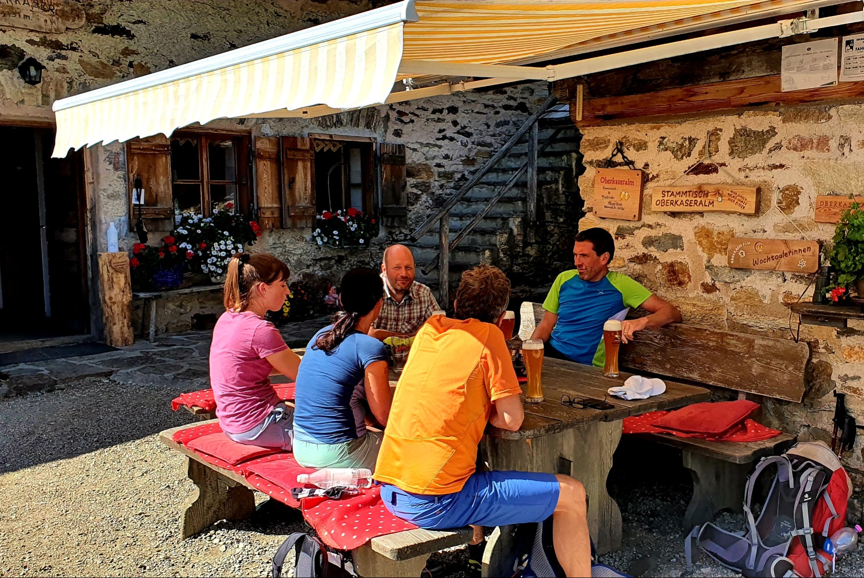 Weiter ging´s mit überwältigendem Blick auf die Spronser Seenplatte hinunter zur Stärkung in die Oberkaseralm. Vorher durfte aber ein seeeehr erfrischendes Bad im Kasersee nicht fehlen...