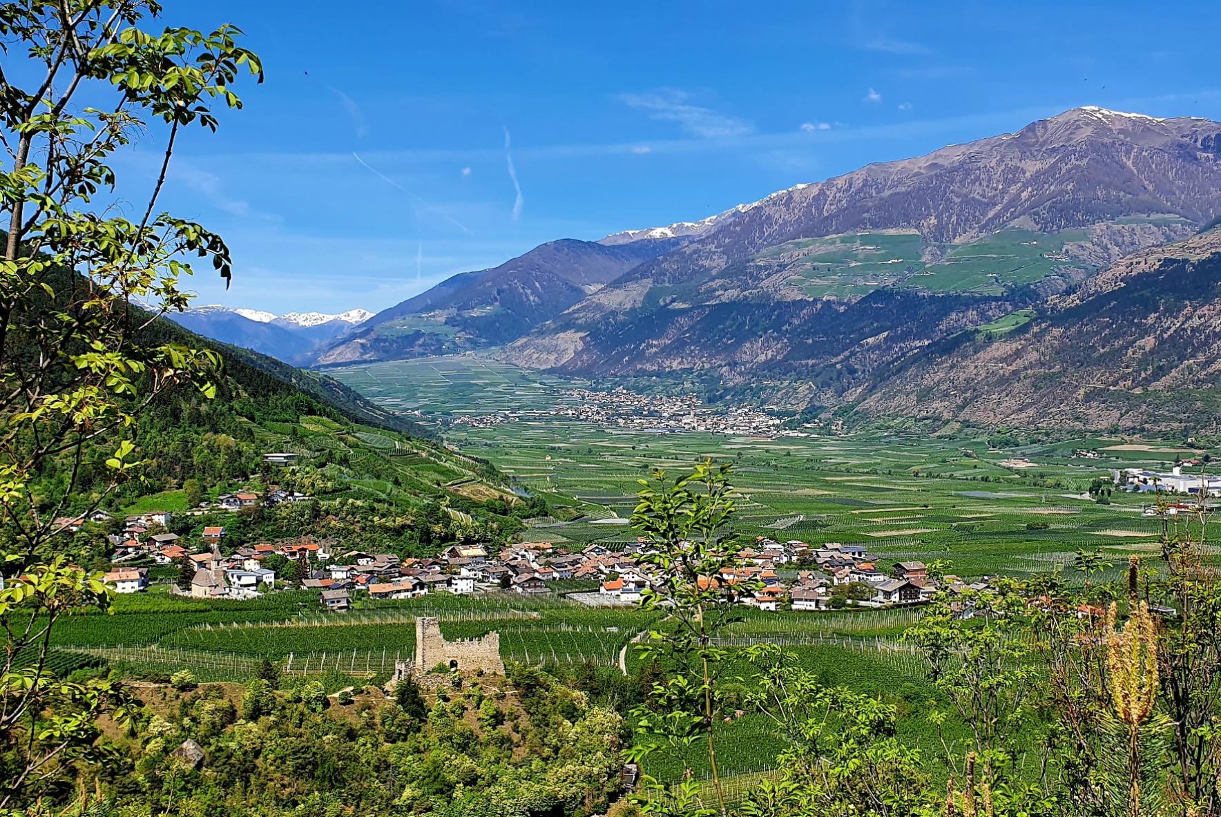 Von Latsch im Mittelvinschgau ging es über einen 600 Jahre alten Waalweg zu den Burgruinen von Montani am Eingang des Martelltales.